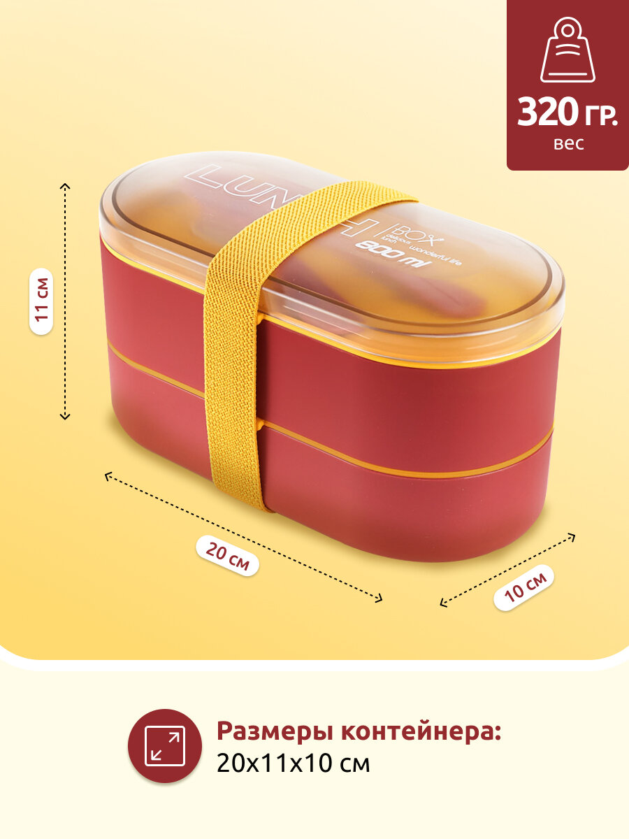 | Комплектация | Ланч-бокс 2-х ярусный, ложка, вилка |