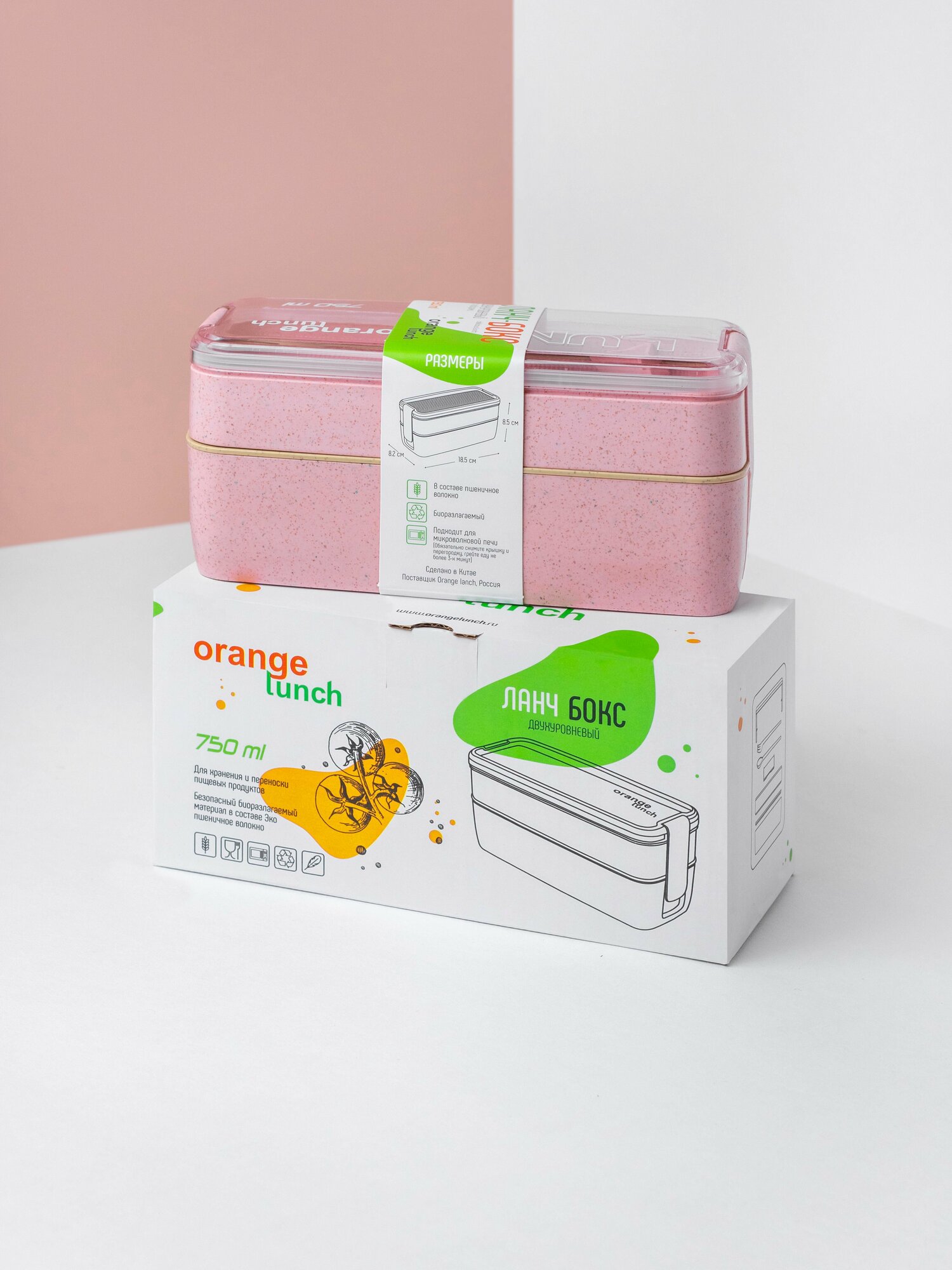 Отзывы на Ланч-бокс двухуровневый Orange Lunch с ложкой, вилкой, 750мл розовый
