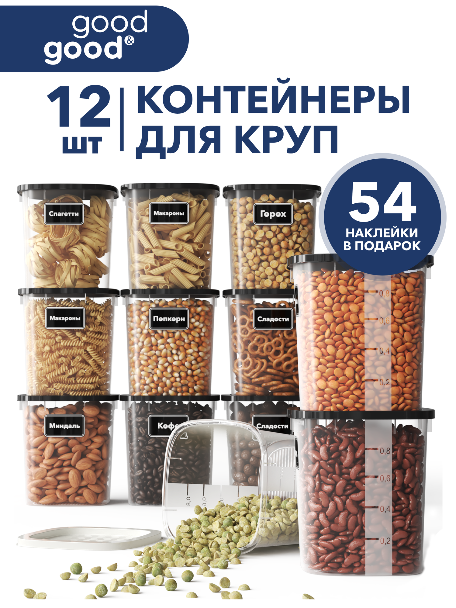 Банки для сыпучих продуктов good&good 12 шт контейнеры для хранения продуктов, для круп, 1 л - 12 шт информация: