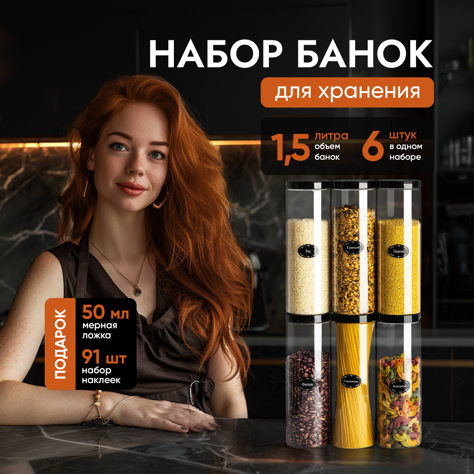 10 цен на Банки для круп и хранения сыпучих продуктов контейнер 1,5л/6 шт