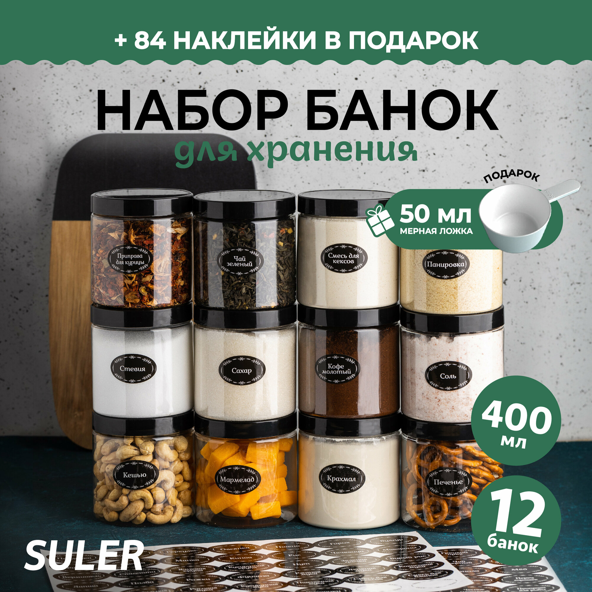 Емкость для сыпучих продуктов баночки стеклянные 12шт + 32 наклейки