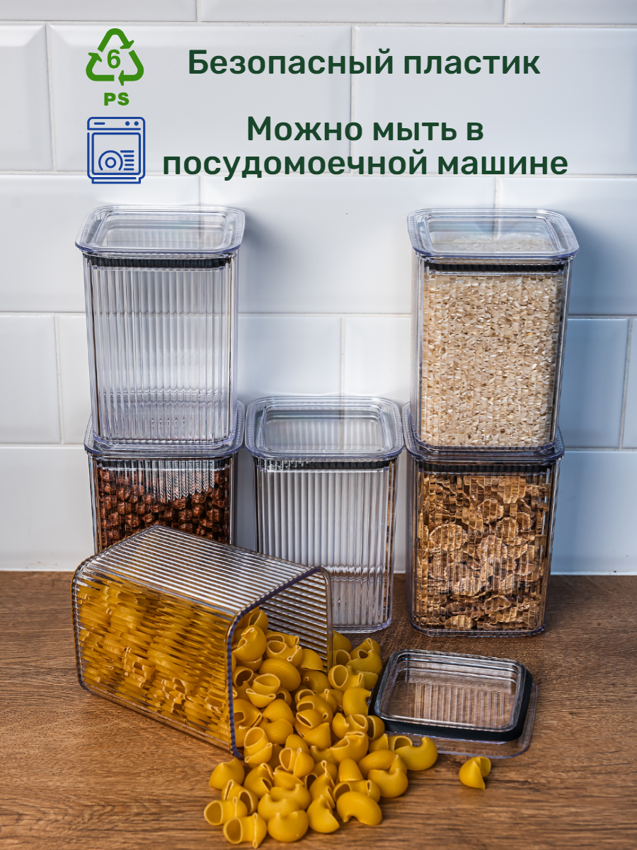 Набор вакуумных контейнеров для сыпучих продуктов "Рим" объемом 1,2л (6шт в наборе) информация: