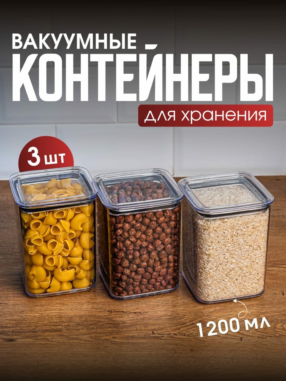 Набор вакуумных контейнеров для сыпучих продуктов "Ультра" объемом 1,2л (3шт в наборе) информация: