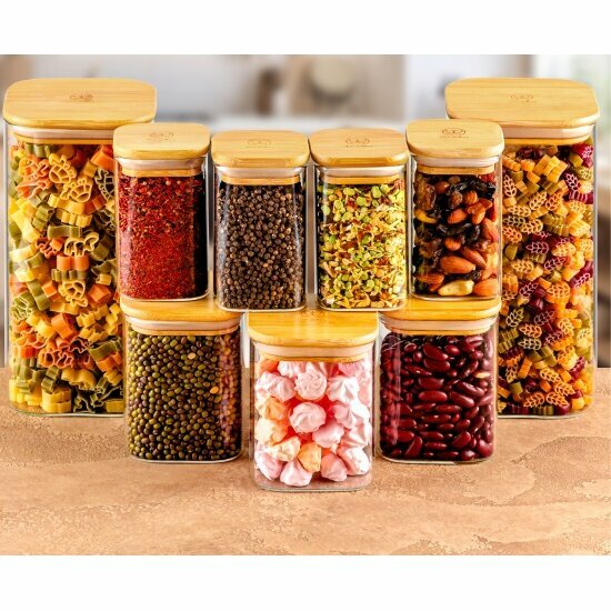 Набор Elan Gallery 9 банок для хранения "Crystal glass" с бамбуковыми крышками (360166 Elan) информация: