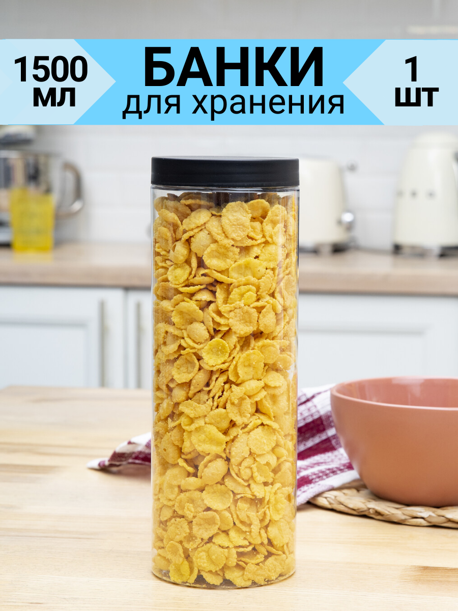10 цен на Емкость для хранения сыпучих продуктов 1,5л х 1 шт. черный