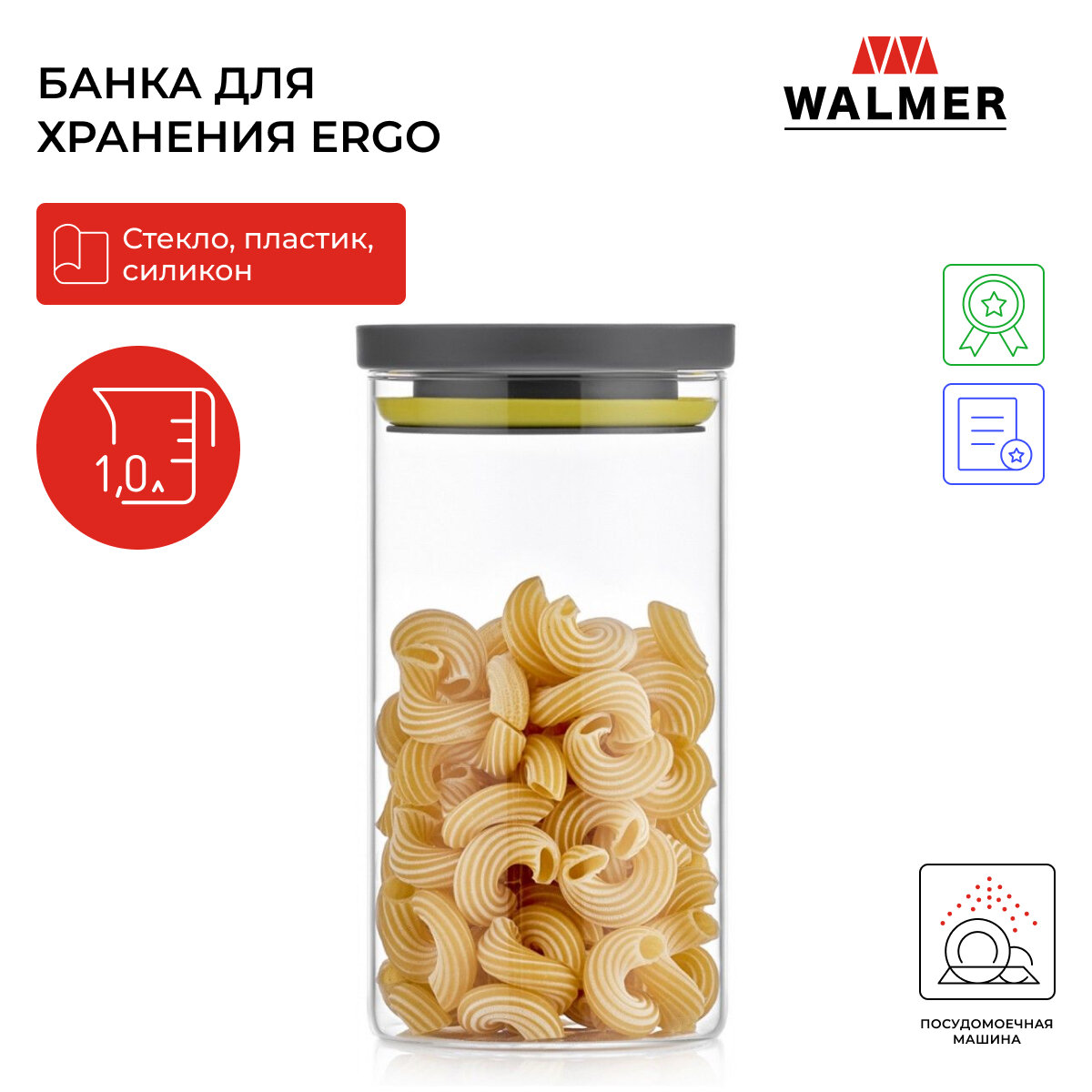 10 цен на Банка для продуктов walmer ergo 1000мл штабелируемая стекло,пластик