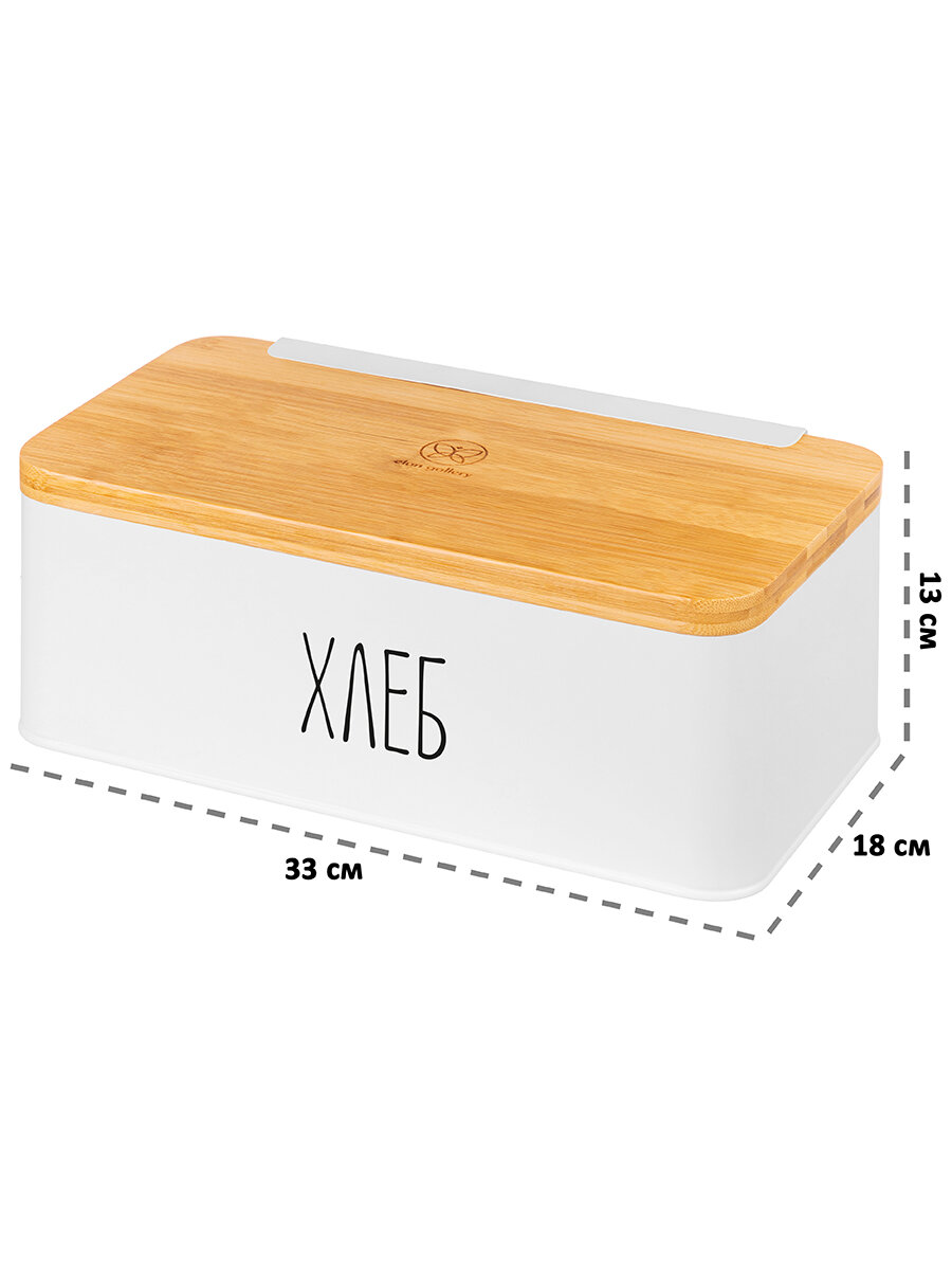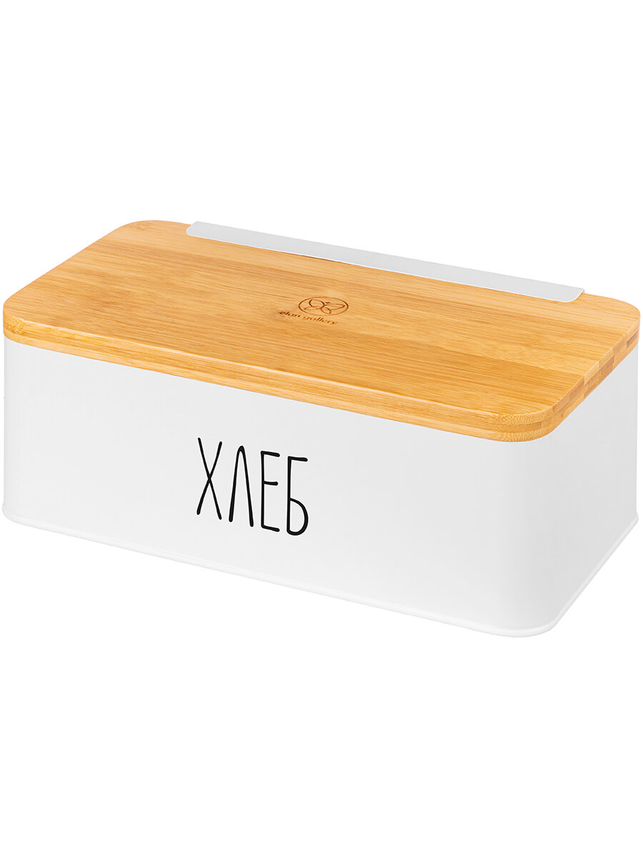 10 цен на Хлебница 33х18х13 см Elan Gallery Белая, с бамбуковой крышкой-доской, с надписью