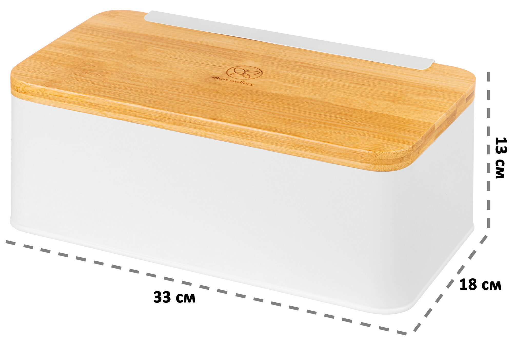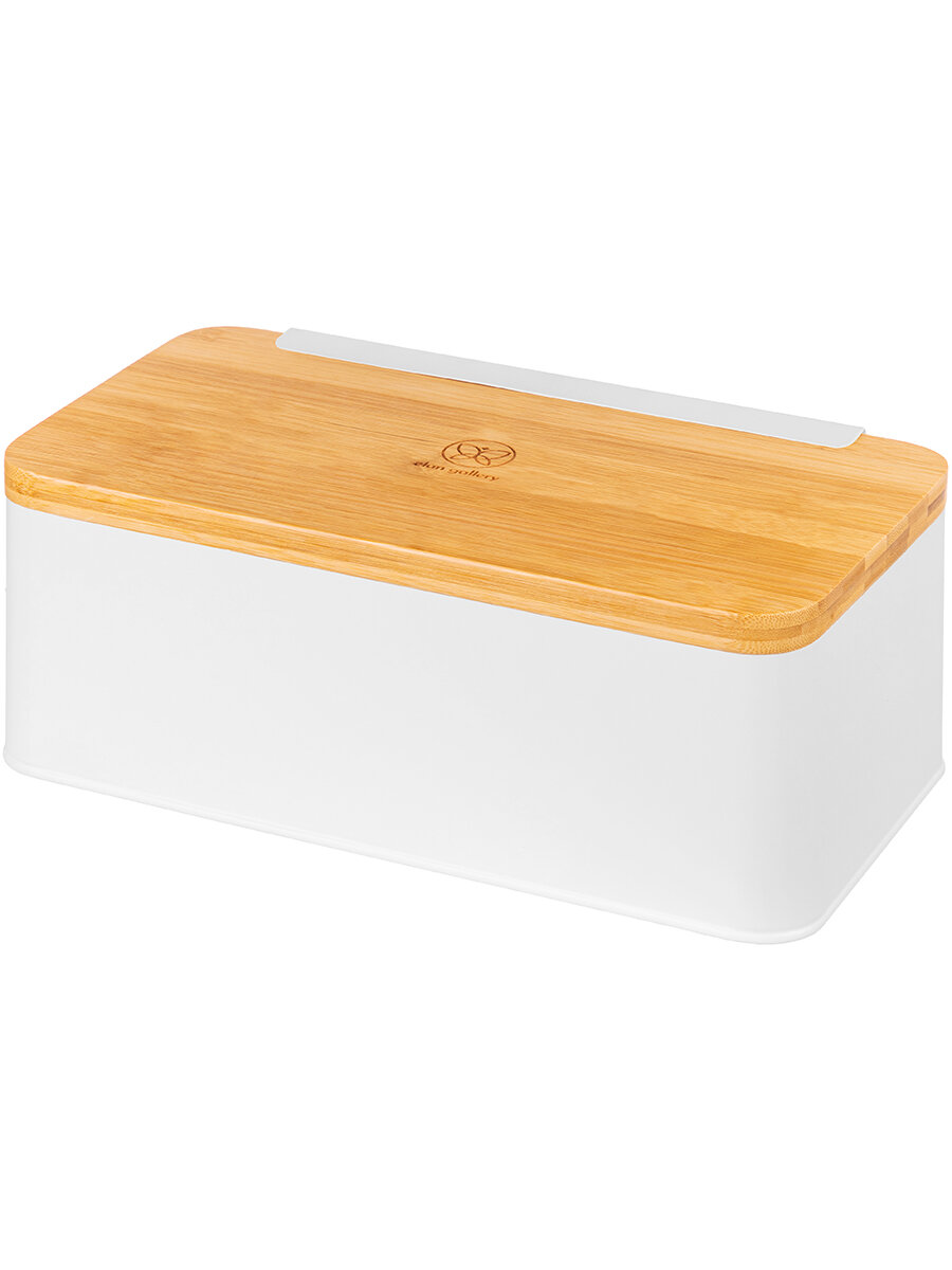 Хлебница 34х19х17 см Elan Gallery Белая с бамбуковой крышкой-доской