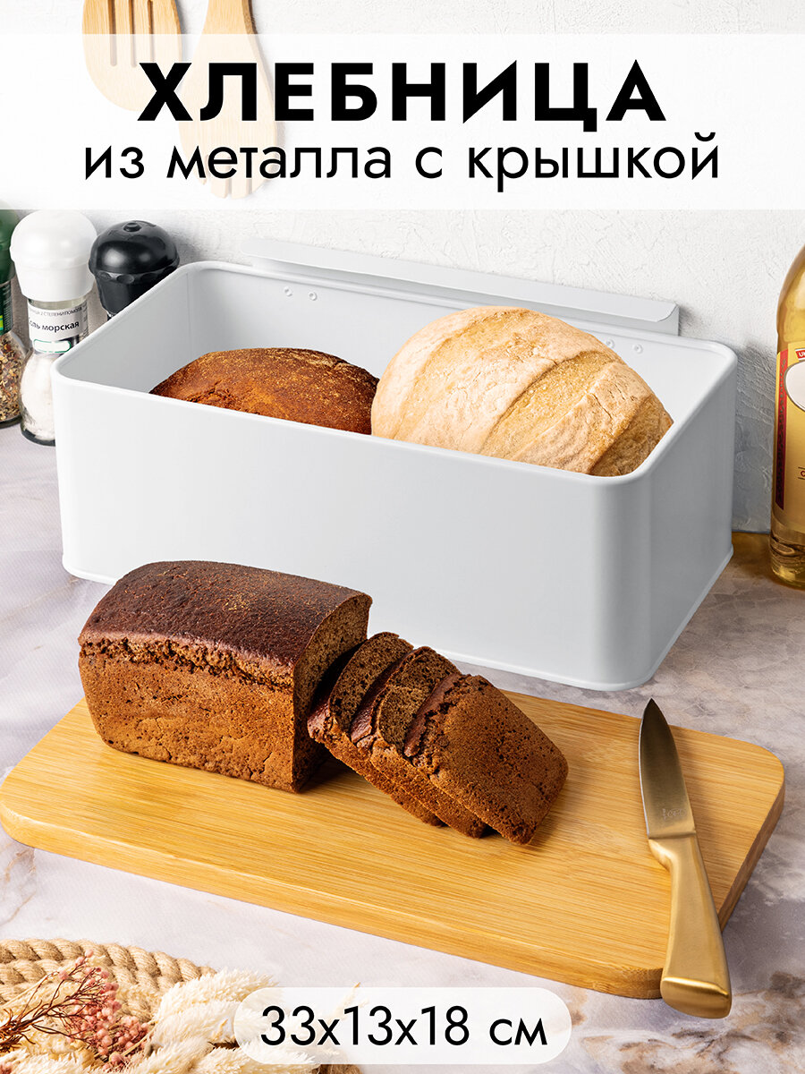 Отзывы на Контейнер для хранения / хлебница / короб металлический 33х13х18 см "Белая" с бамбуковой крышкой-доской