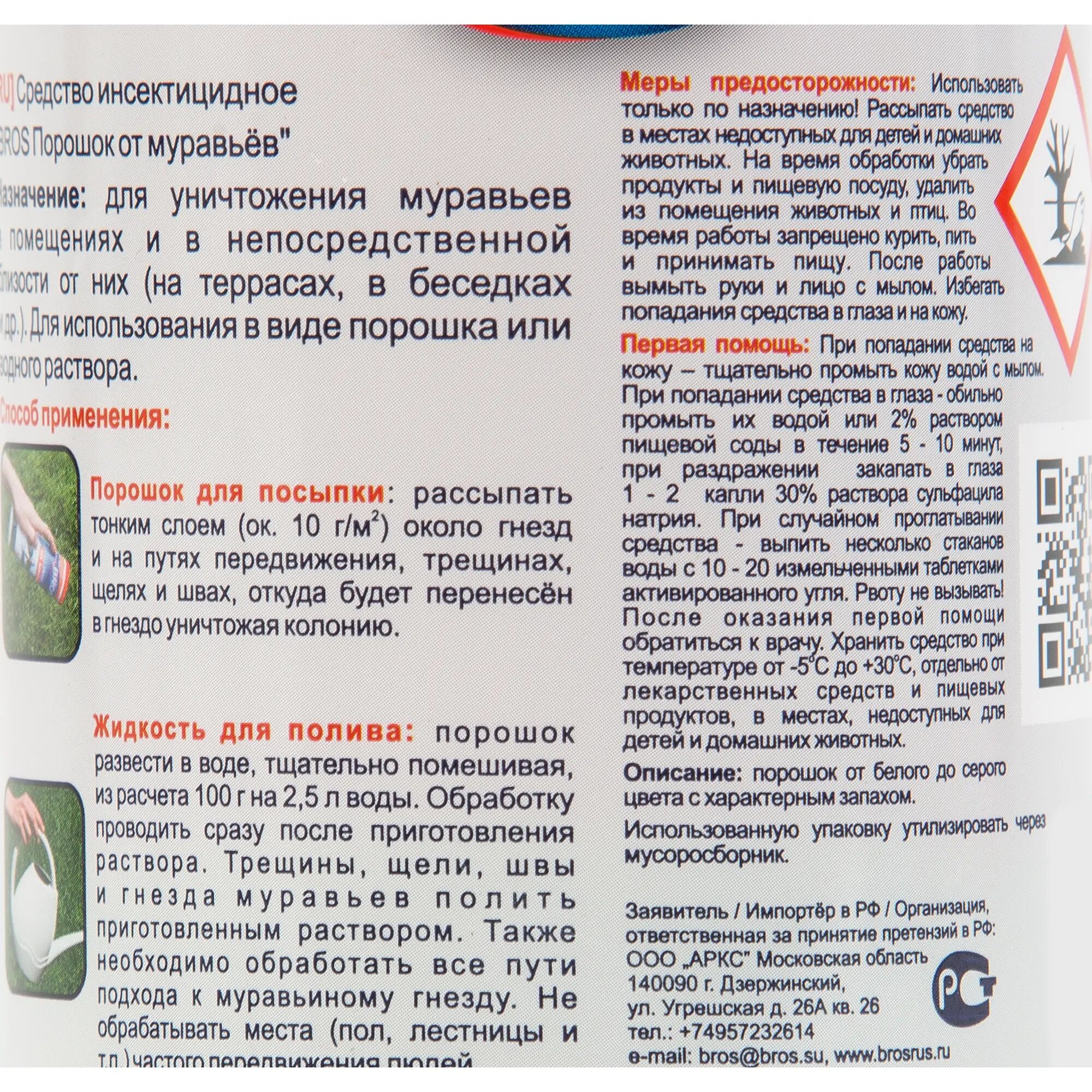 Порошок от муравьев BROS 250 гр. информация: