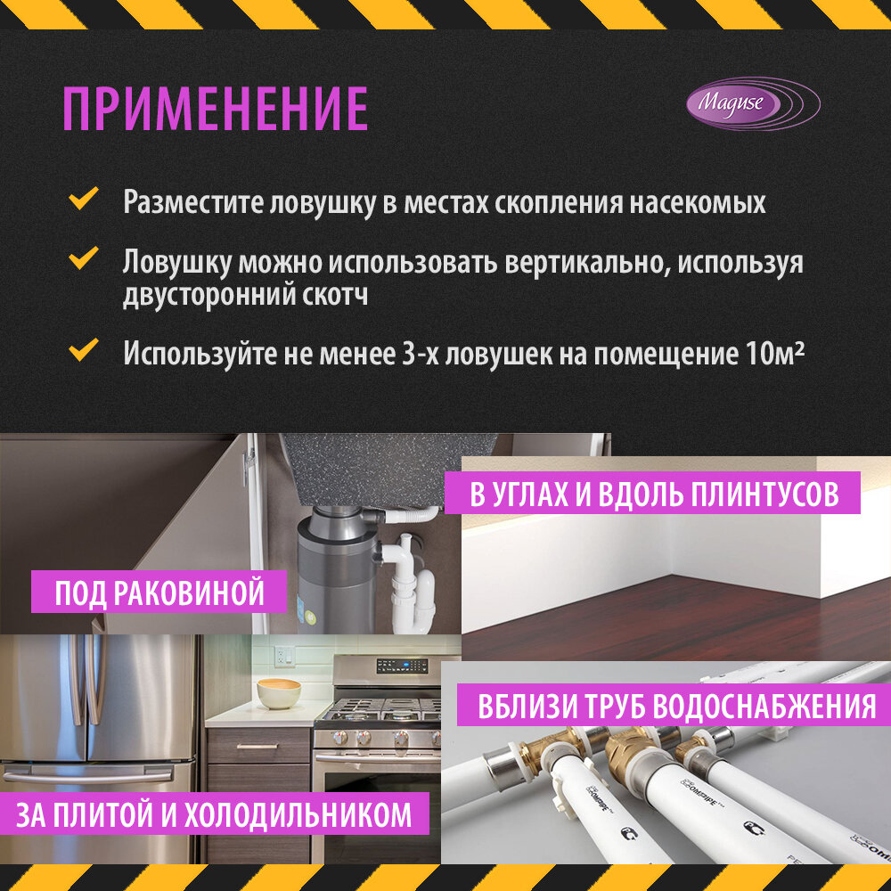 Средство для тараканов и муравьев, клеевые ловушки для тараканов MAGUSE Clean, 6 шт 188 ₽