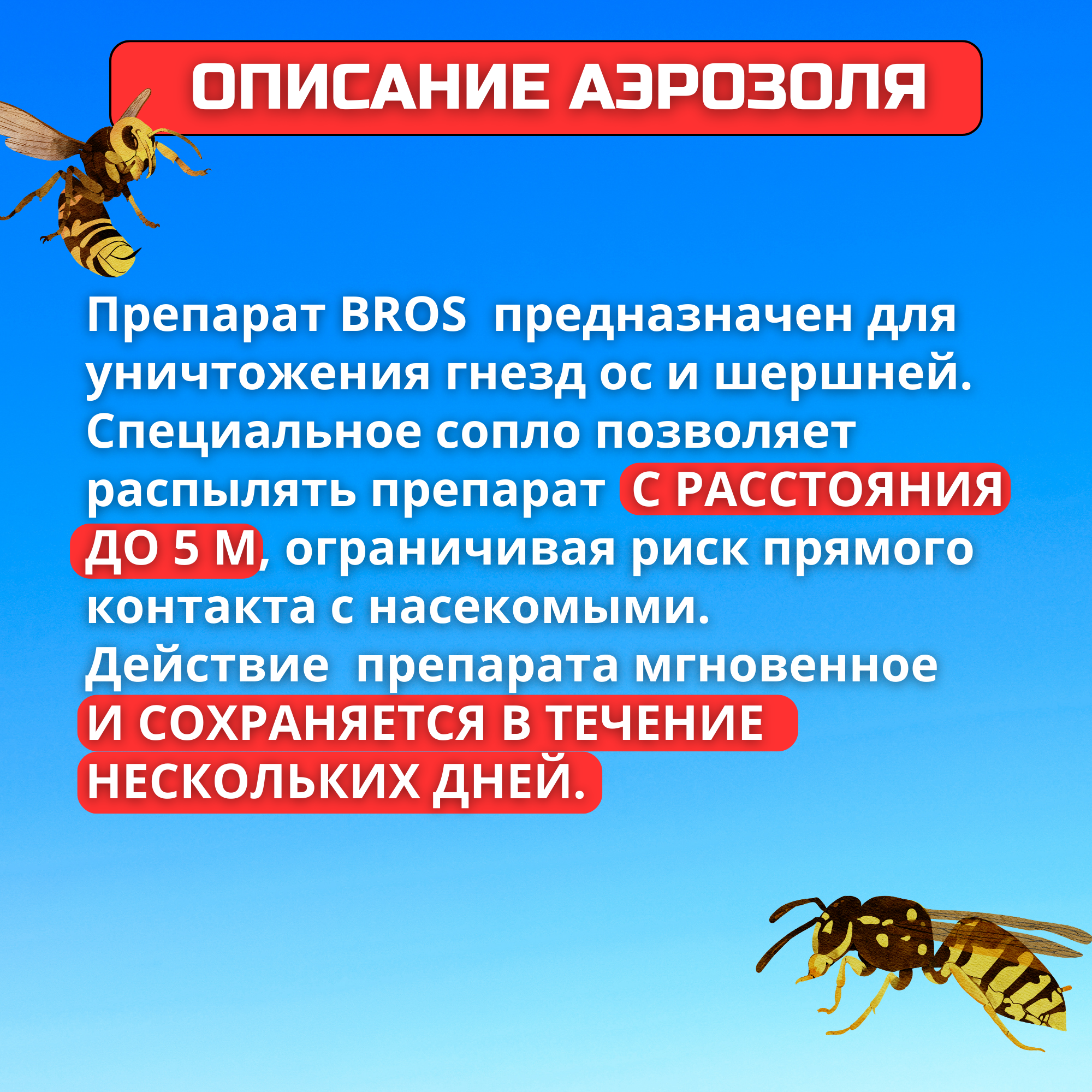 | Способ применения | Обрабатывать гнездо насекомых лучше всего после захода солнца, ночью или ранним утром – именно в это время насекомые малоподвижны и находятся «дома». Разместившись 2-3 метра от гнезда, нужно направить струю по ветру примерно 5-7 секунд. Насекомые погибают в течение получаса. Через сутки можно убрать гнездо. |