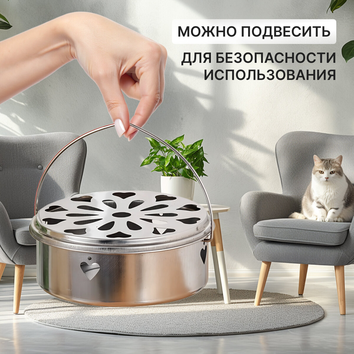| Способ применения | в подставку поместите держатель зубцами вверх (снизу держателя отогните металлические ножки), на зубцы поместите подожженную спираль или пластину от комаров, закройте крышку. |