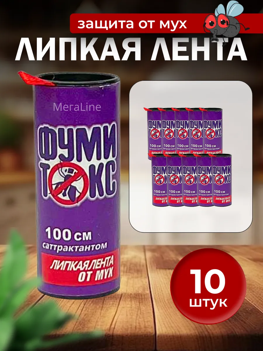 10 цен на Липкая лента от мух 10 шт. по 100 см с аттрактантом Фумитокс