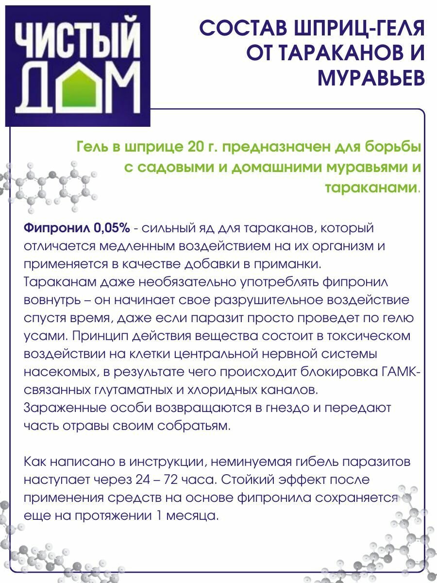 Гель Чистый дом шприц от тараканов и муравьёв, 20 мл