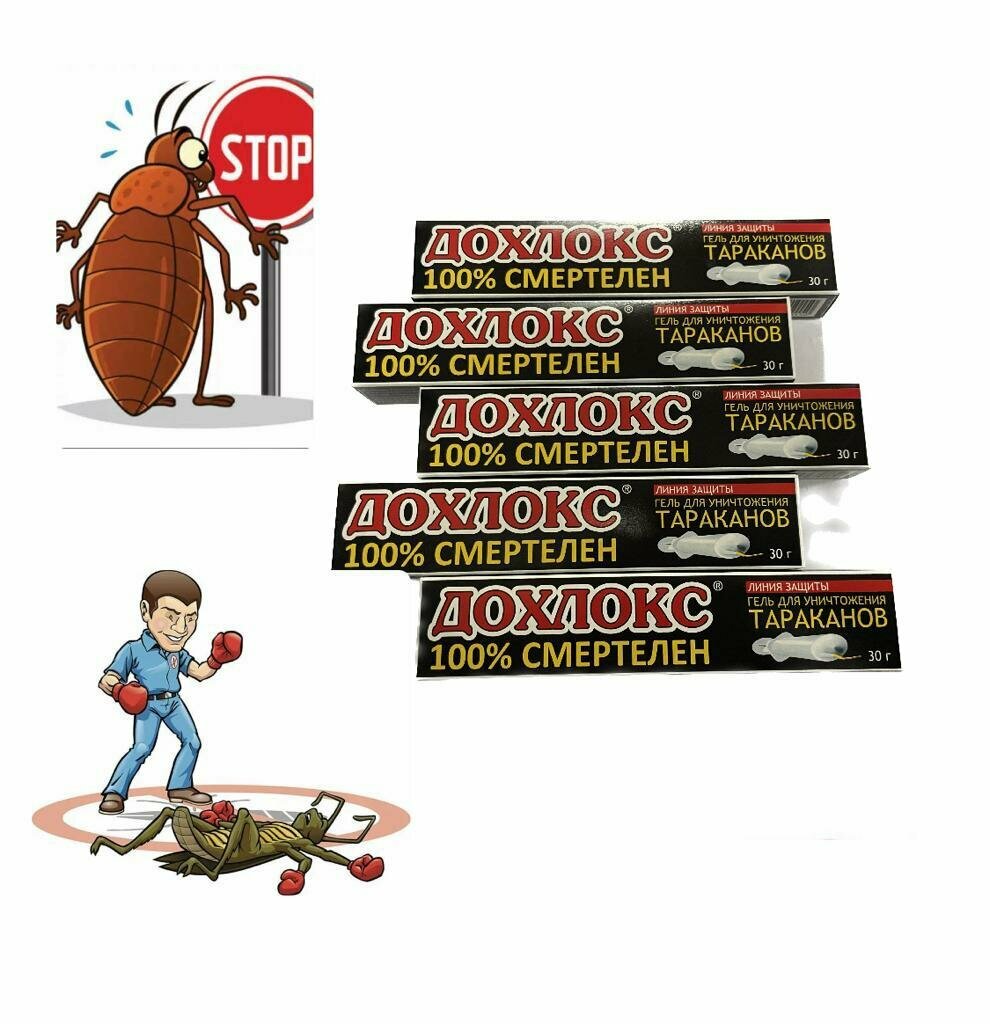 Гель Дохлокс для уничтожения тараканов, 5 штук- по 30 грамм информация: