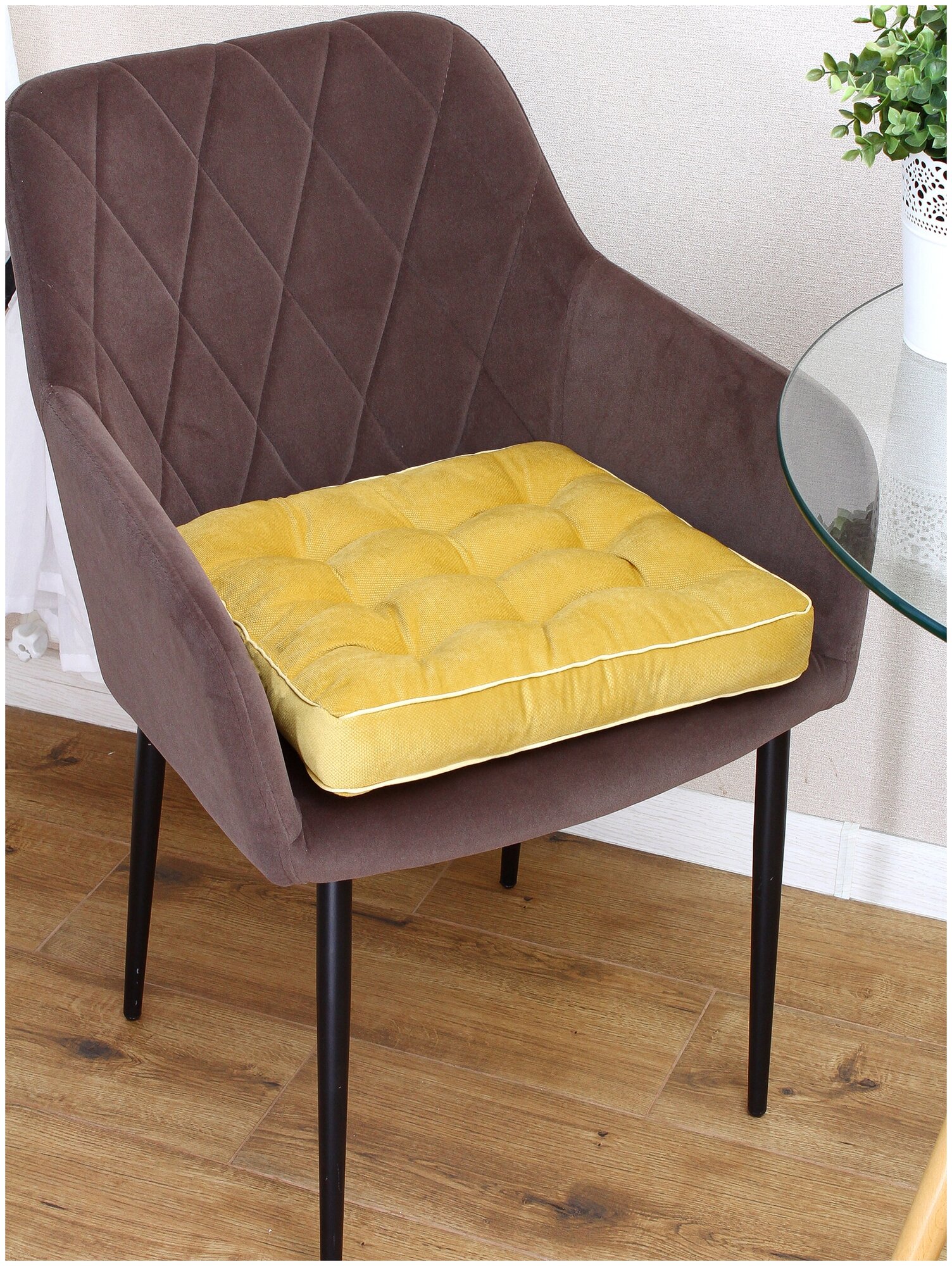 10 цен на Подушка на стул Bio-Line /Декоративная подушка/Сидушка высоким бортом/Табуретник/Квадратная/40х40 см/желтый
