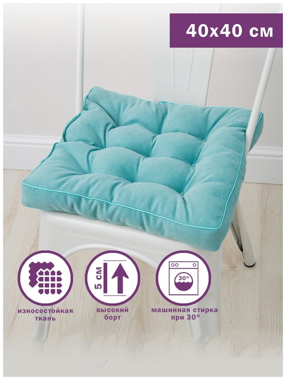 Подушка на стул Bio-Line /Декоративная подушка/Сидушка высоким бортом/Табуретник/Квадратная/40х40 см/бирюзовый информация: