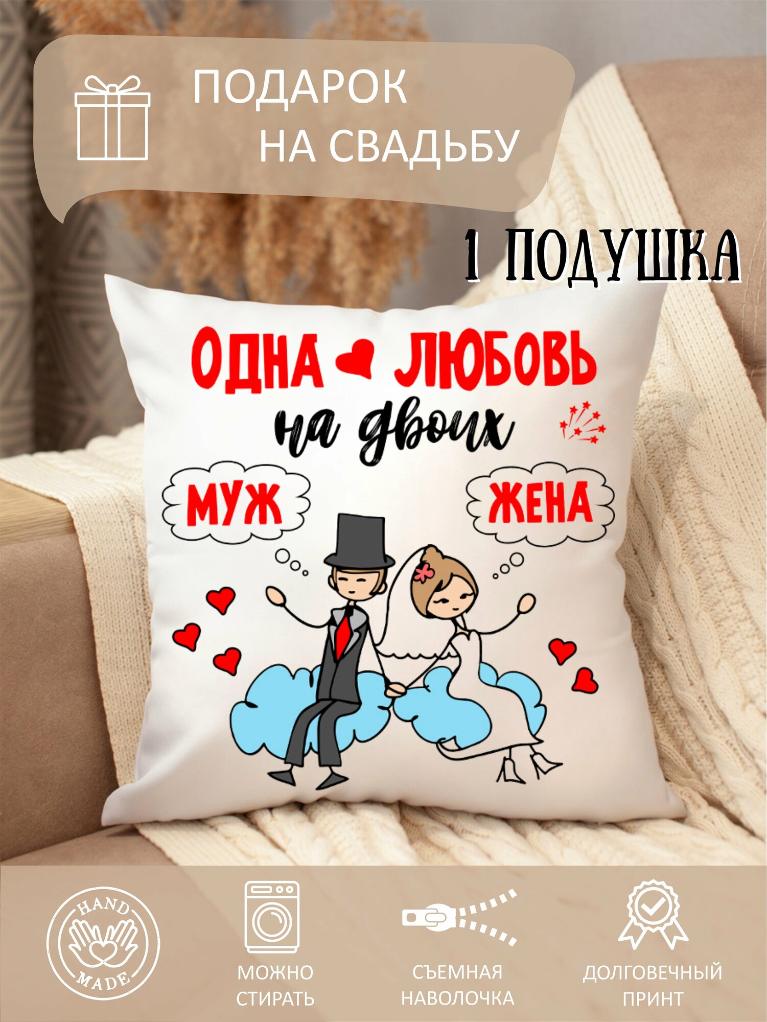 Отзывы на Подушка с принтом в подарок на свадьбу жениху невесте мужу жене молодоженам, сувенир на свадьбу 1 шт