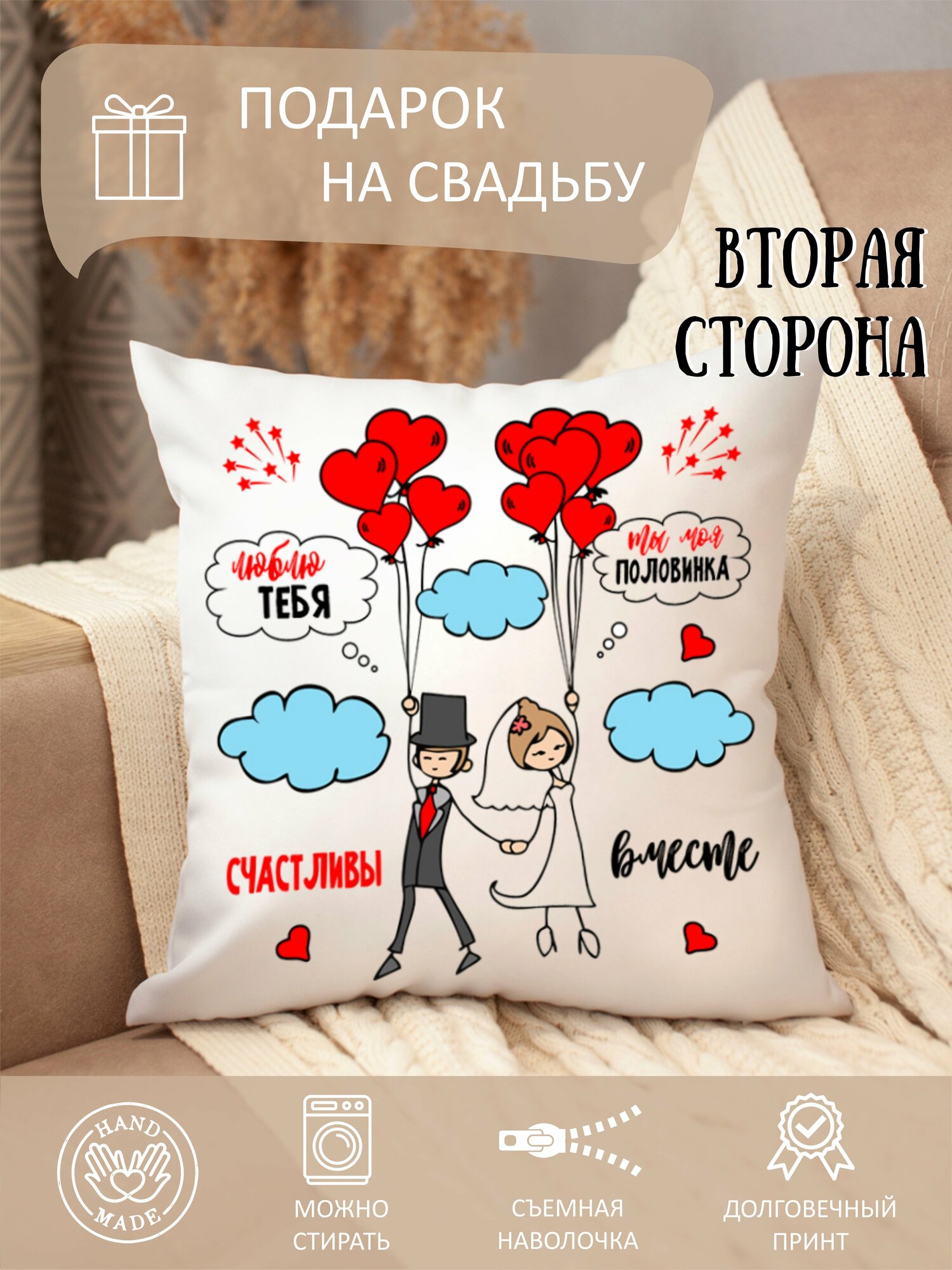 Подушка с принтом в подарок на свадьбу жениху невесте мужу жене молодоженам, сувенир на свадьбу 1 шт информация: