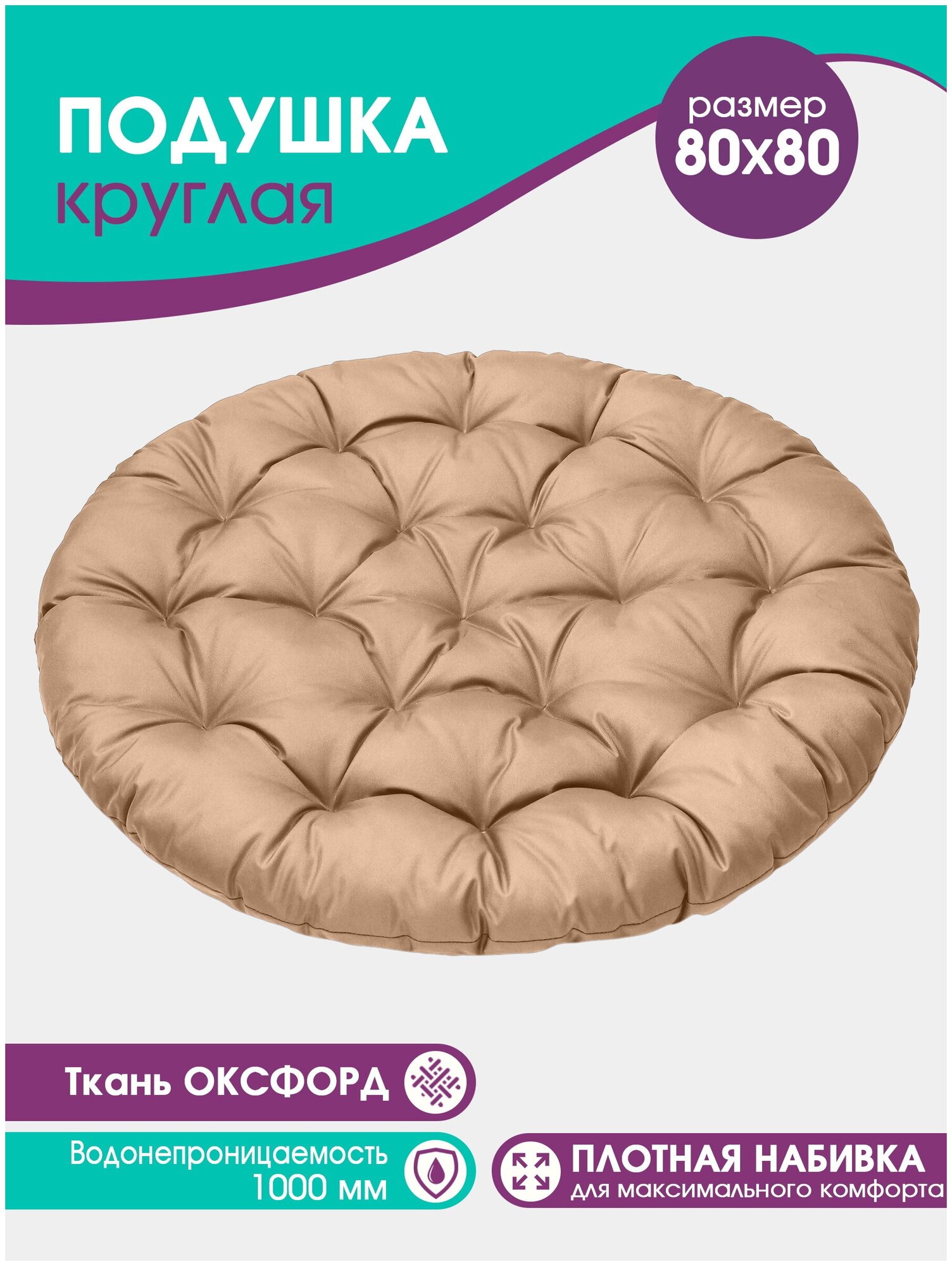 | Дополнительная информация | Круглая подушка 80 см. Водонепроницаемая прочная ткань Оксфорд. |