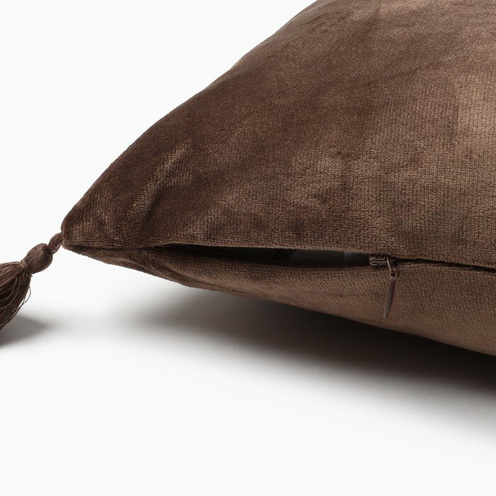 Наволочка декоративная с кисточками «Этель» цвет кофе, 45х45 см, полиэстер, велюр информация: