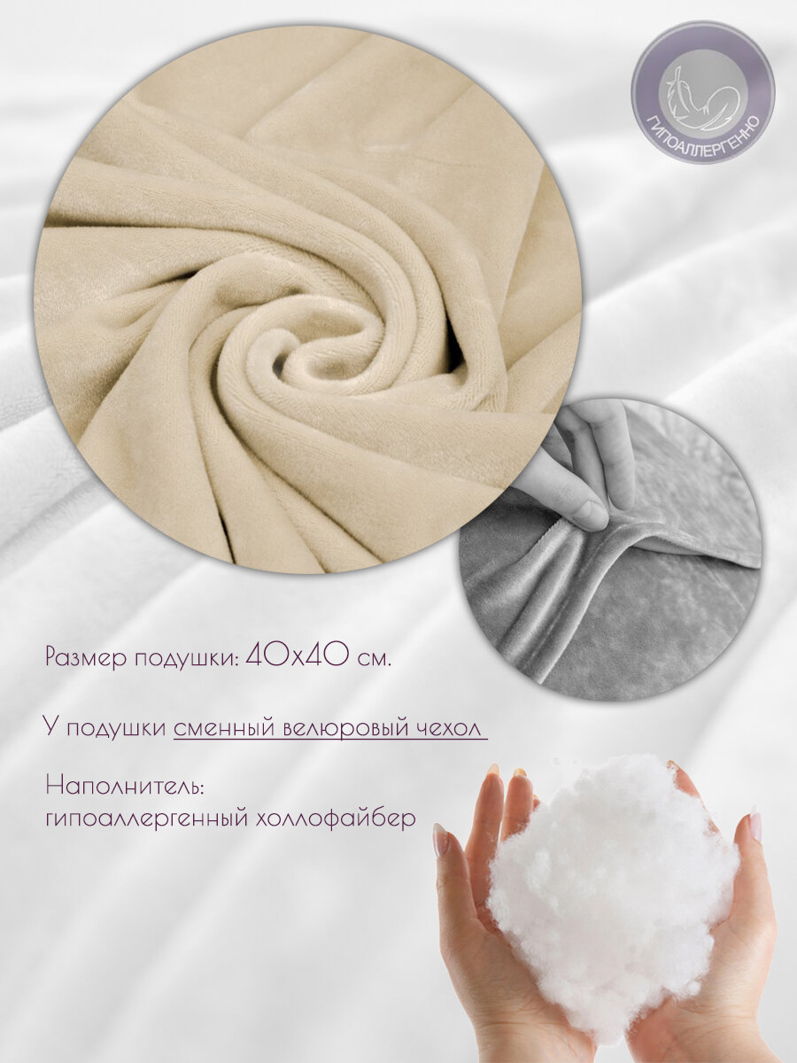 Подушка декоративная 40 на 40 см на диван, кровать, подоконник, на кресло, на качели, в салон, бежевый 850 ₽