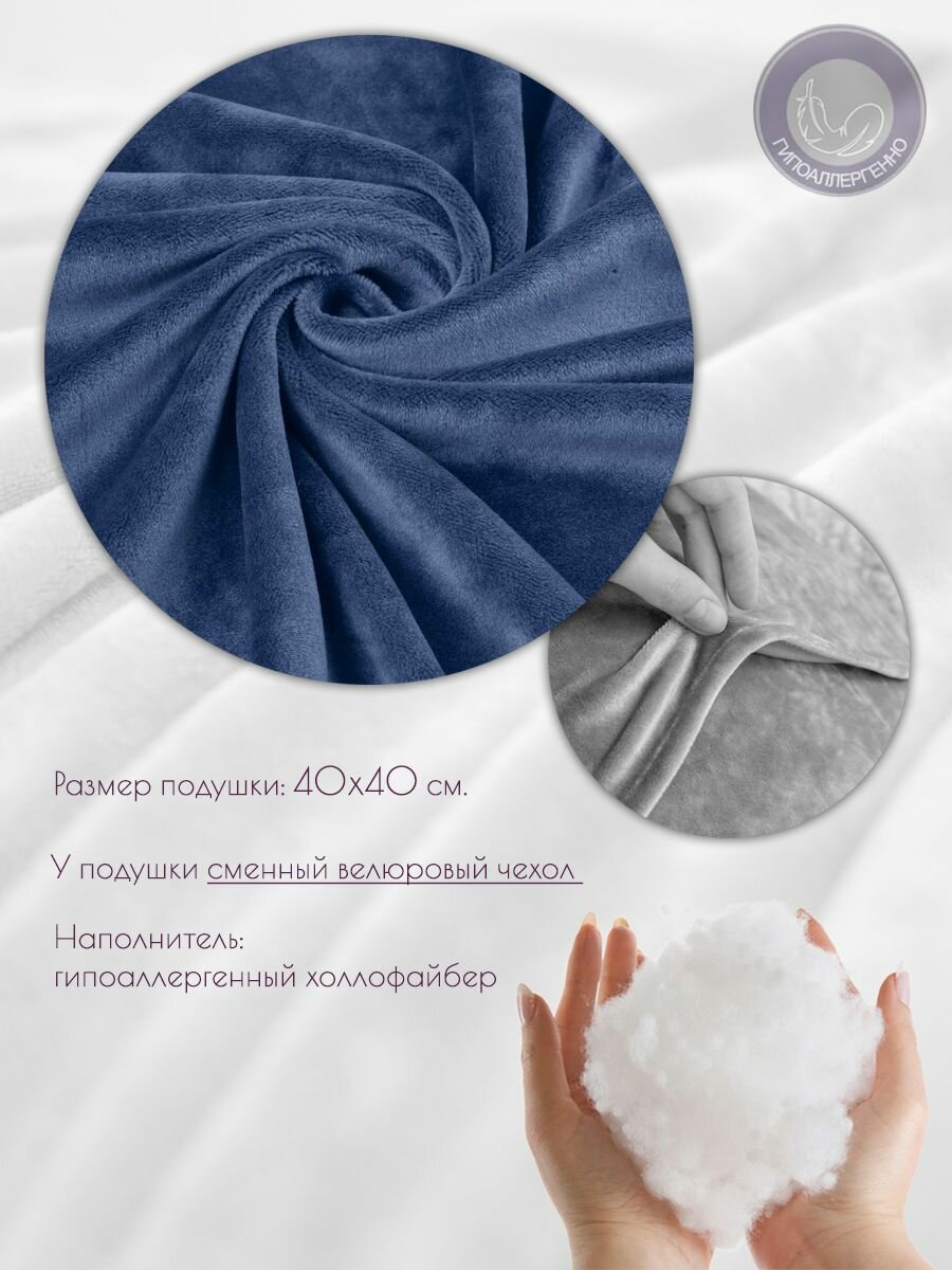 Подушка декоративная 40 на 40 см на диван, кровать, подоконник, на кресло, на качели, в салон, темно-синий 850 ₽