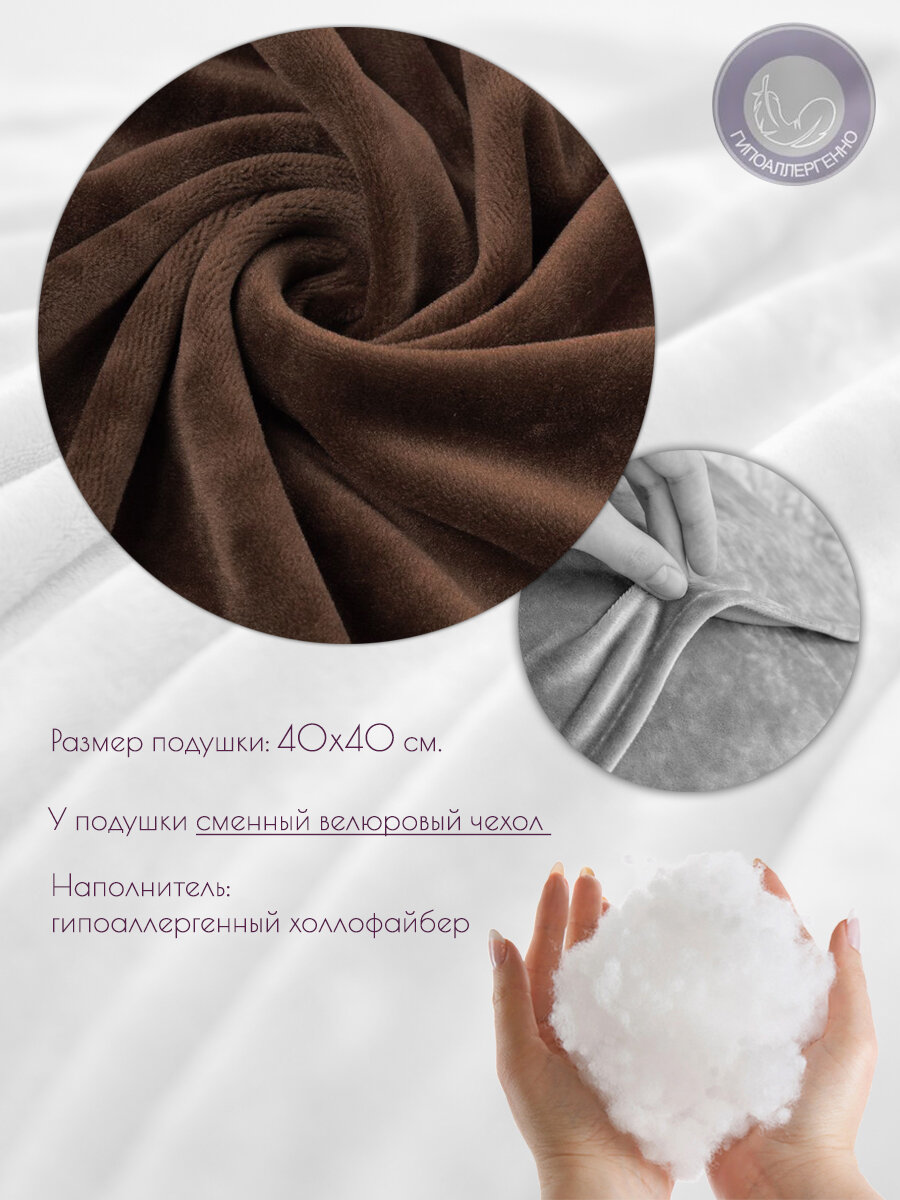 Подушка декоративная 40 на 40 см на диван, кровать, подоконник, на кресло, на качели, в салон, каштановый информация:
