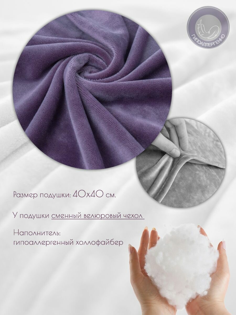 10 цен на Подушка декоративная 40 на 40 см на диван, кровать, подоконник, на кресло, на качели, в салон, аметистовый