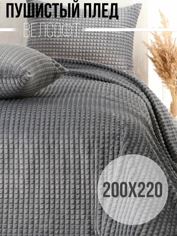 Отзывы на Пушистый Плед покрывало Велсофт кубик Евро 200х220, накидка на кровать, Серый