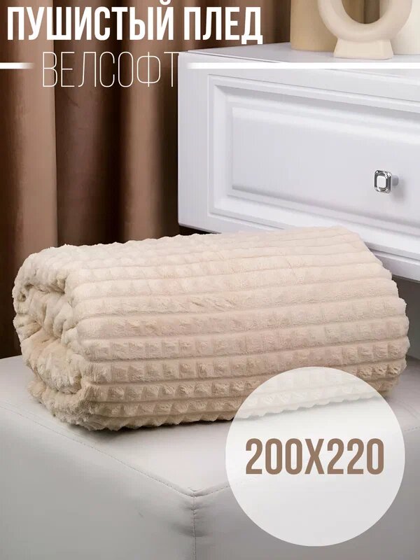 Отзывы на Пушистый Плед покрывало Велсофт кубик Евро 200х220, накидка на кровать, Бежевый