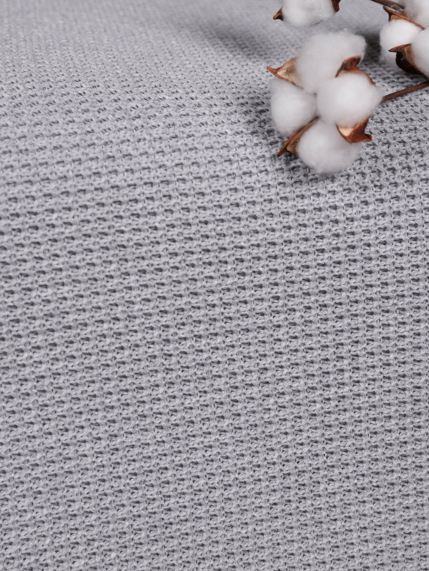 Плед 240x260, вязаный, KING PLAID, светло-серый, хлопок, покрывало на кровать, на диван, на кресло, в подарочной сумке 4 500 ₽