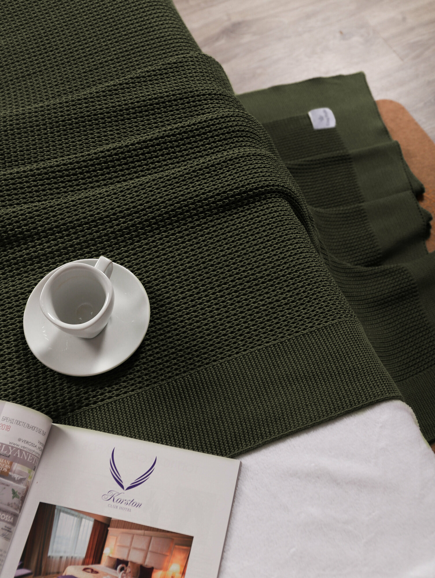 Отзывы на Плед 220x240, вязаный, KING PLAID, хаки, хлопок, покрывало на кровать, на диван, на кресло, в подарочной сумке
