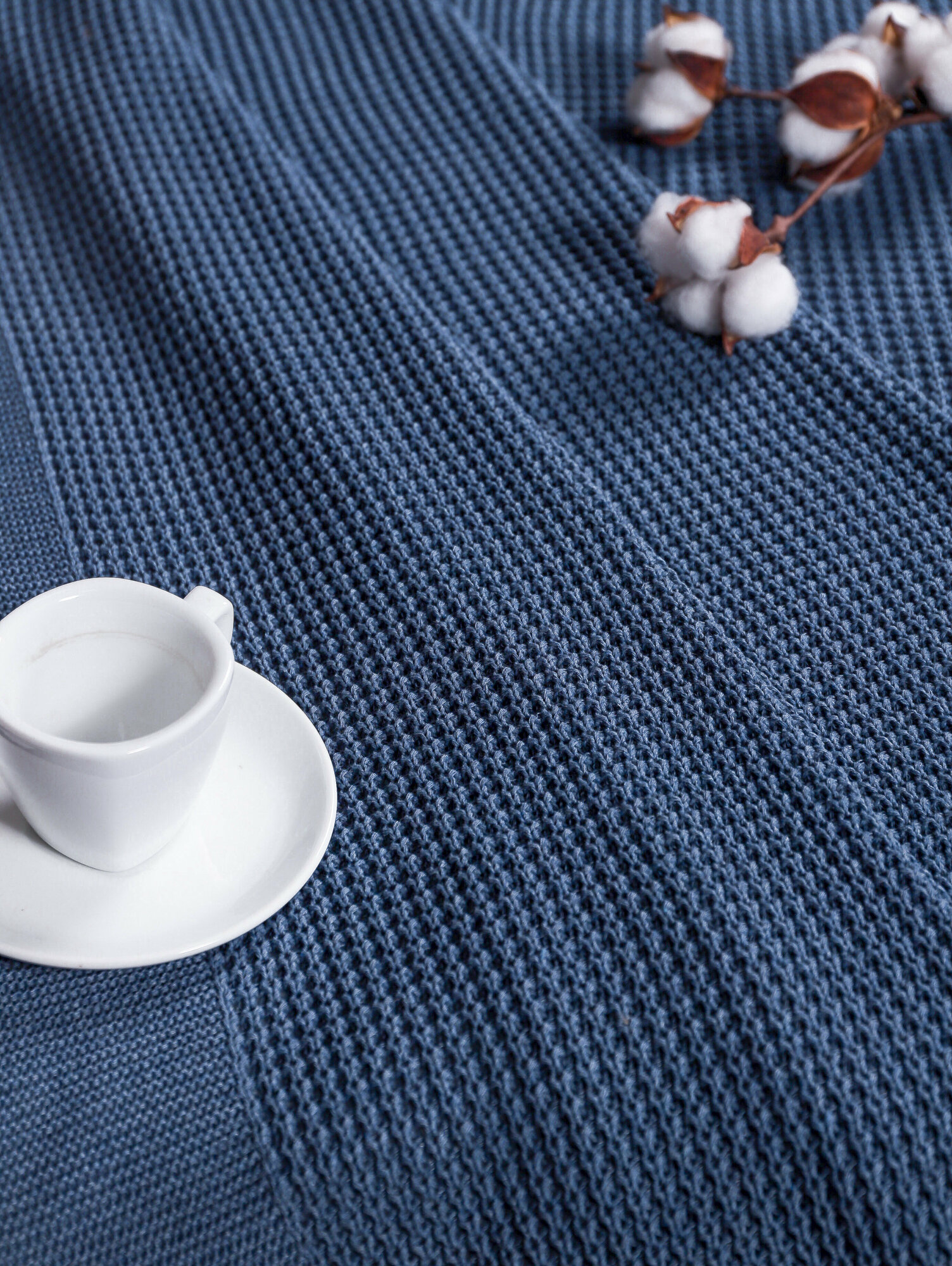 Плед 240x260, вязаный, KING PLAID, джинс, хлопок, покрывало на кровать, на диван, на кресло, в подарочной сумке информация:
