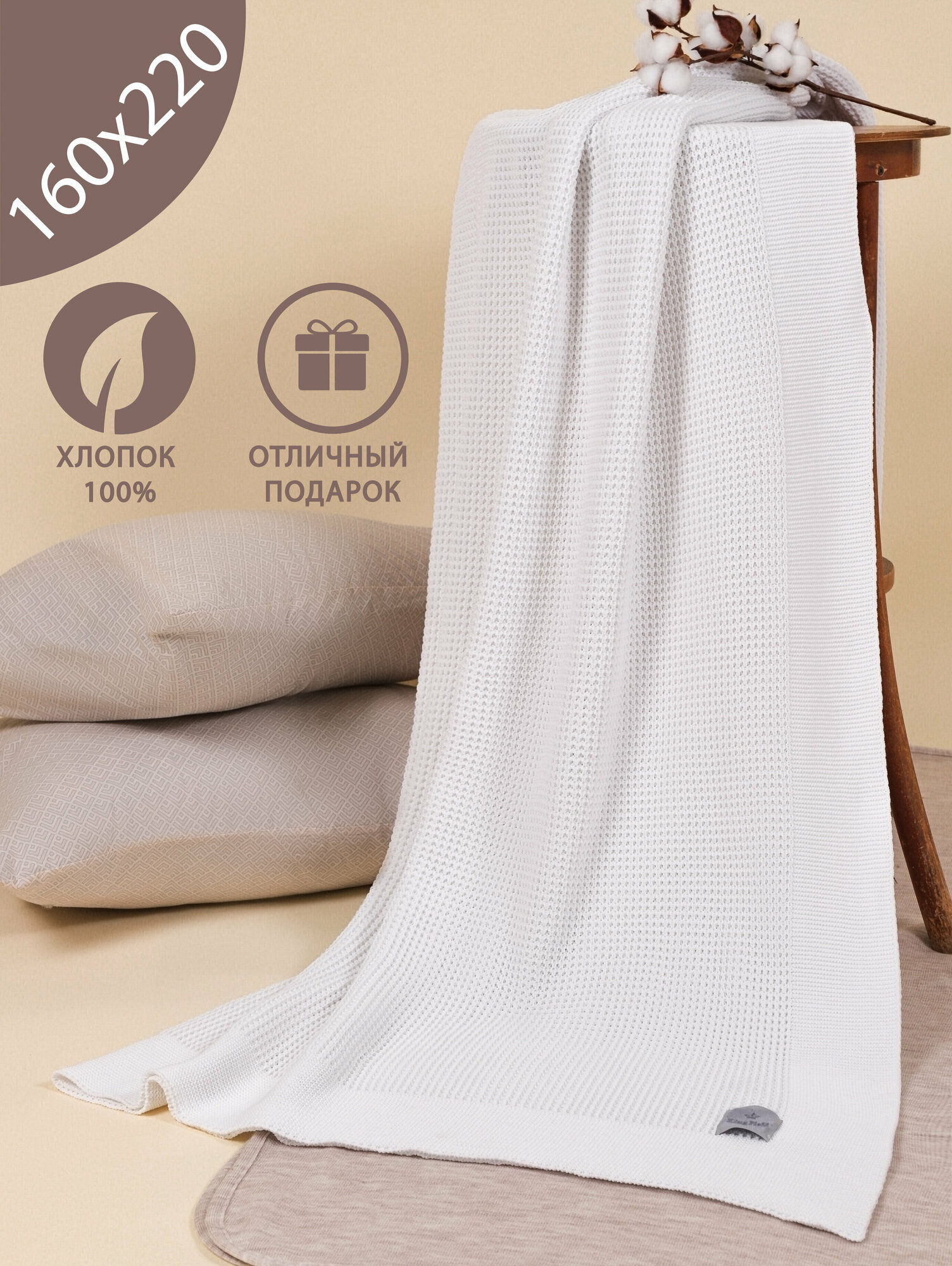 Отзывы на Плед 160x220, вязаный, KING PLAID, белый, хлопок, покрывало на кровать, на диван, на кресло, в подарочной сумке
