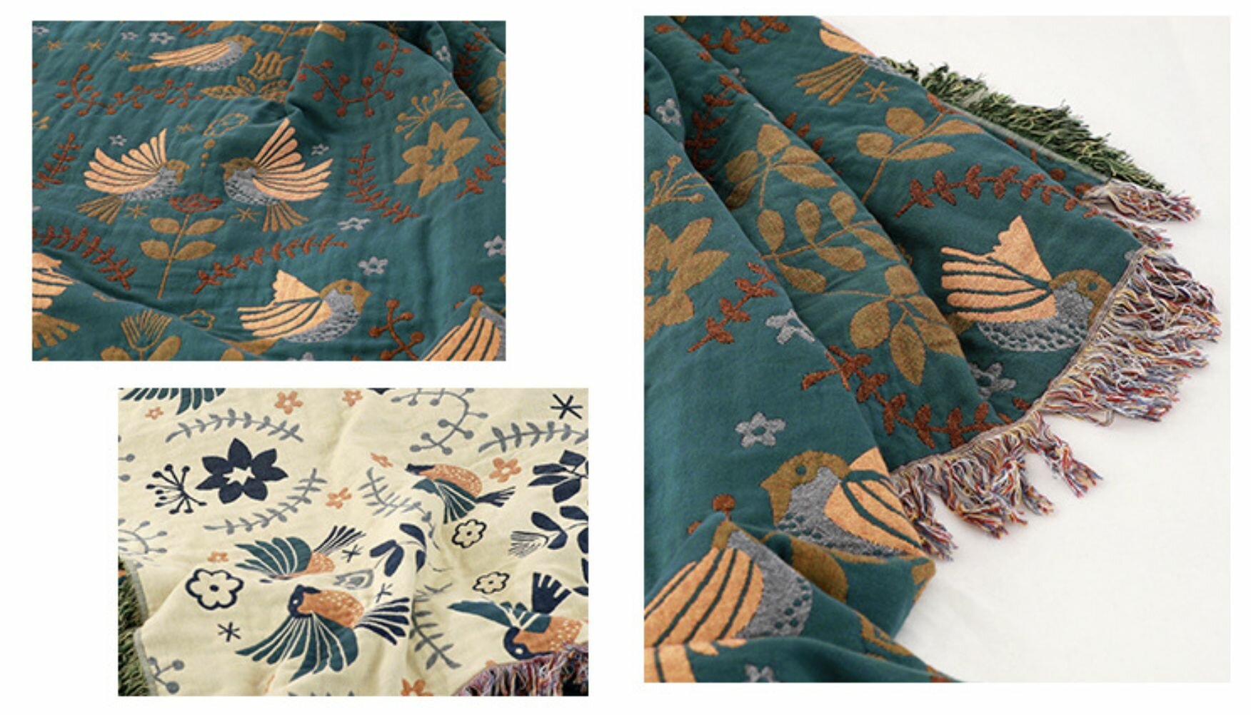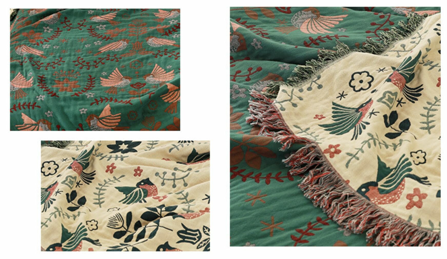 Отзывы на Плед покрывало в японском стиле Birds из натурального 100% хлопка DAO Home, 200х150см - Зеленый