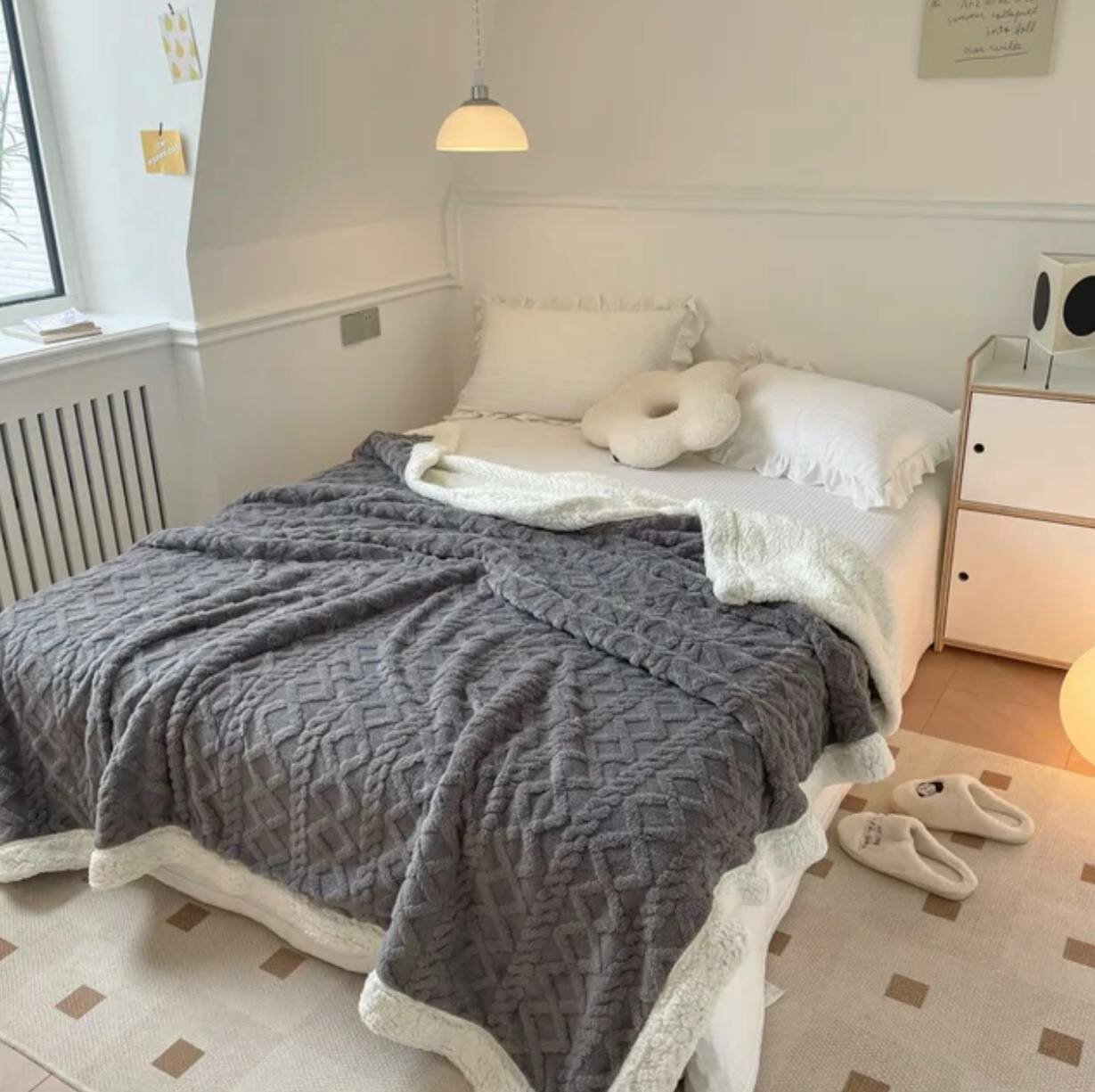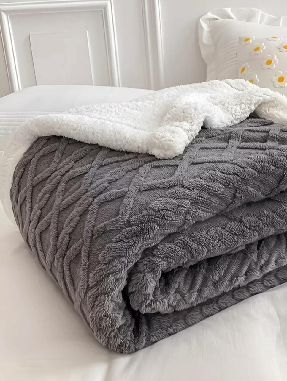 Отзывы на Плед/покрывало на кровать/диван 200х220 см шерстяной, Велсофт, Темно-серый