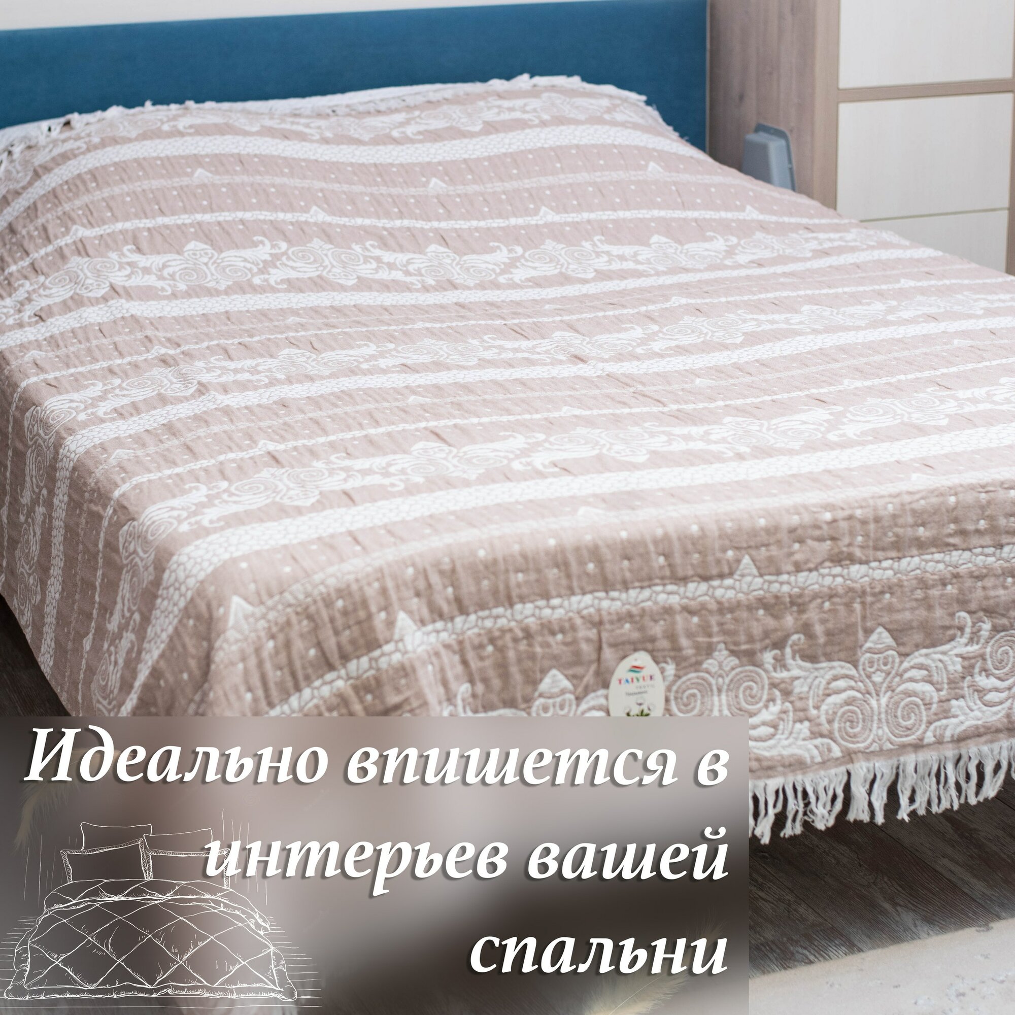 Покрывало Уютный Домик двухстороннее из 100% хлопка, 200х230см, евро информация: