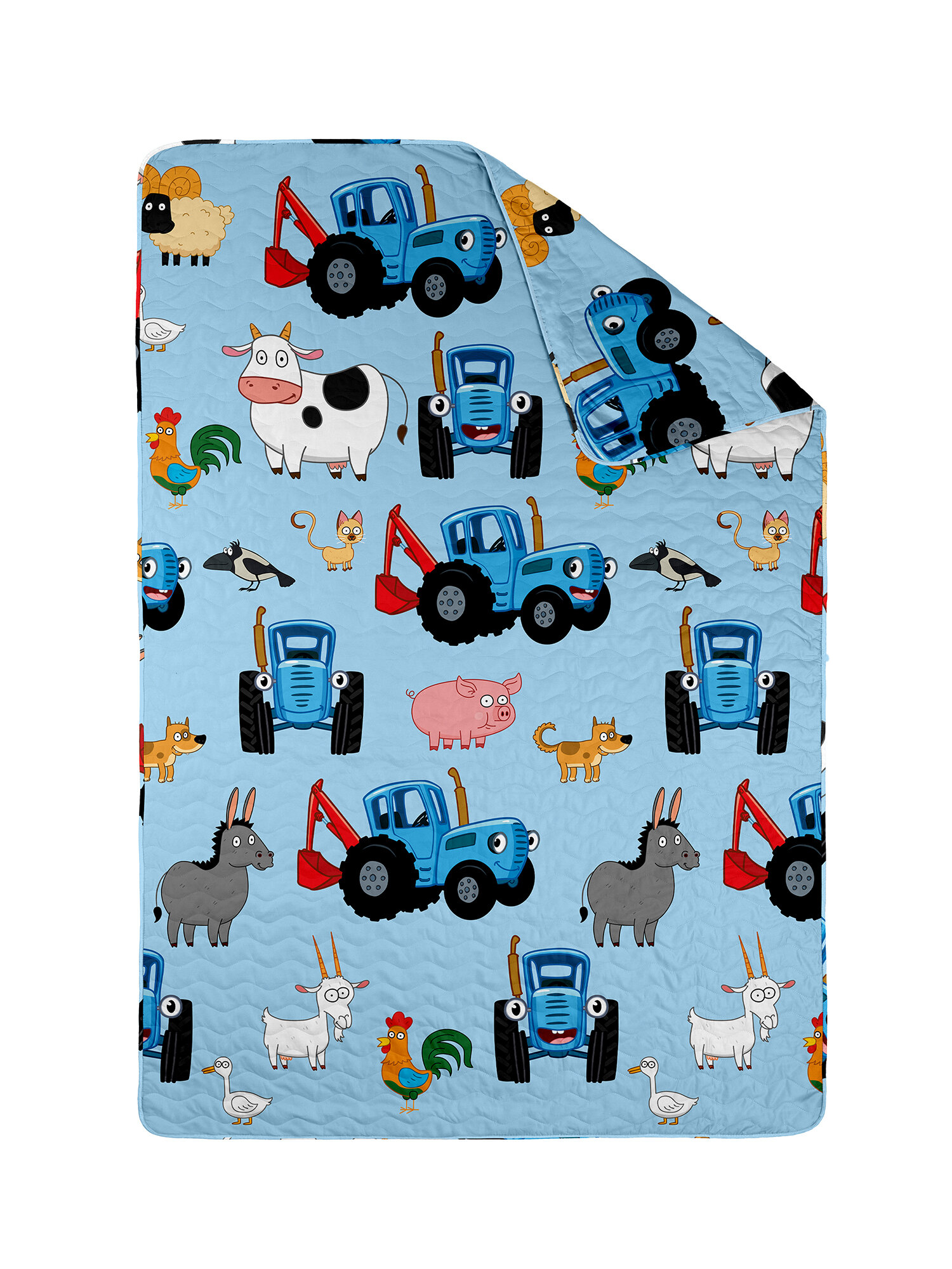 10 цен на Детское стеганное покрывало / покрывало на кровать / десткое покрывало / покрывало на детскую кровать "Непоседа" 90х140, "Синий трактор" Трактор и животные