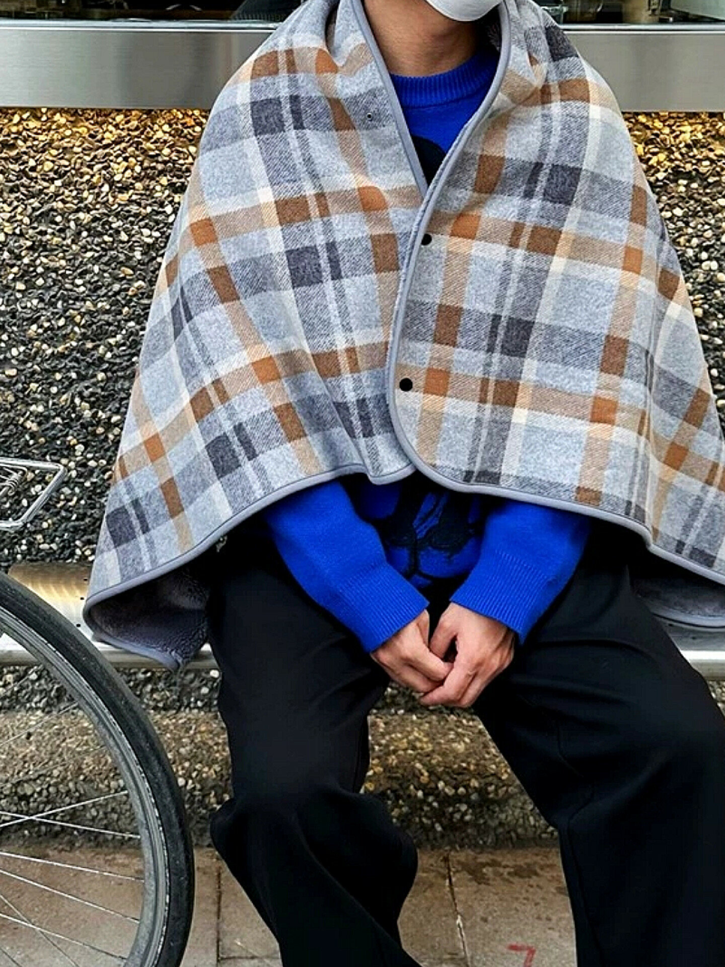 Плед накидка-пончо 130х80 см, синий, клетка, 100 % ПЭ, 450 гр/м² 1 600 ₽