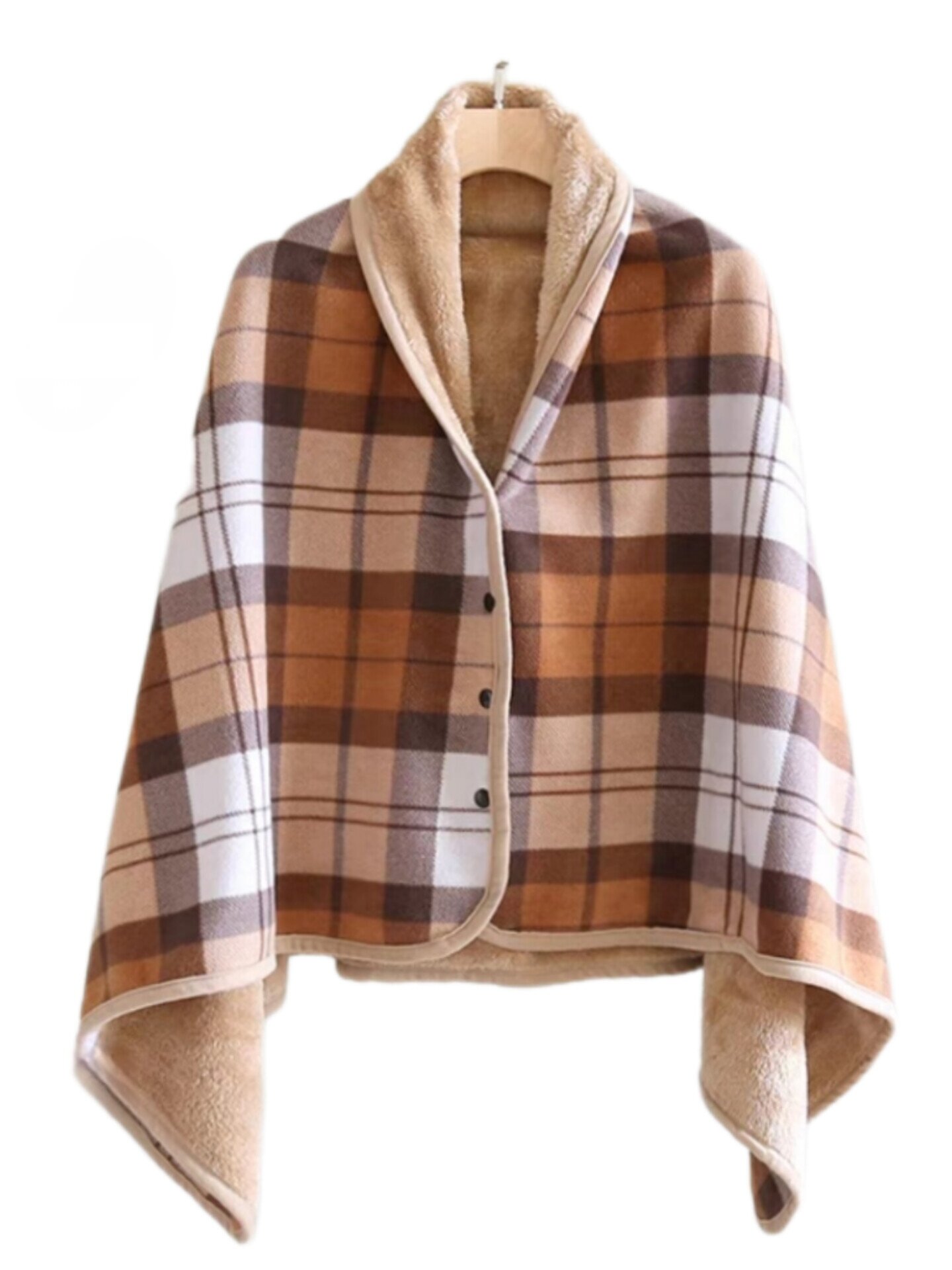Плед пончо накидка 130х80 см, клетка, двухсторонний, на кнопках, подарочный 1 600 ₽