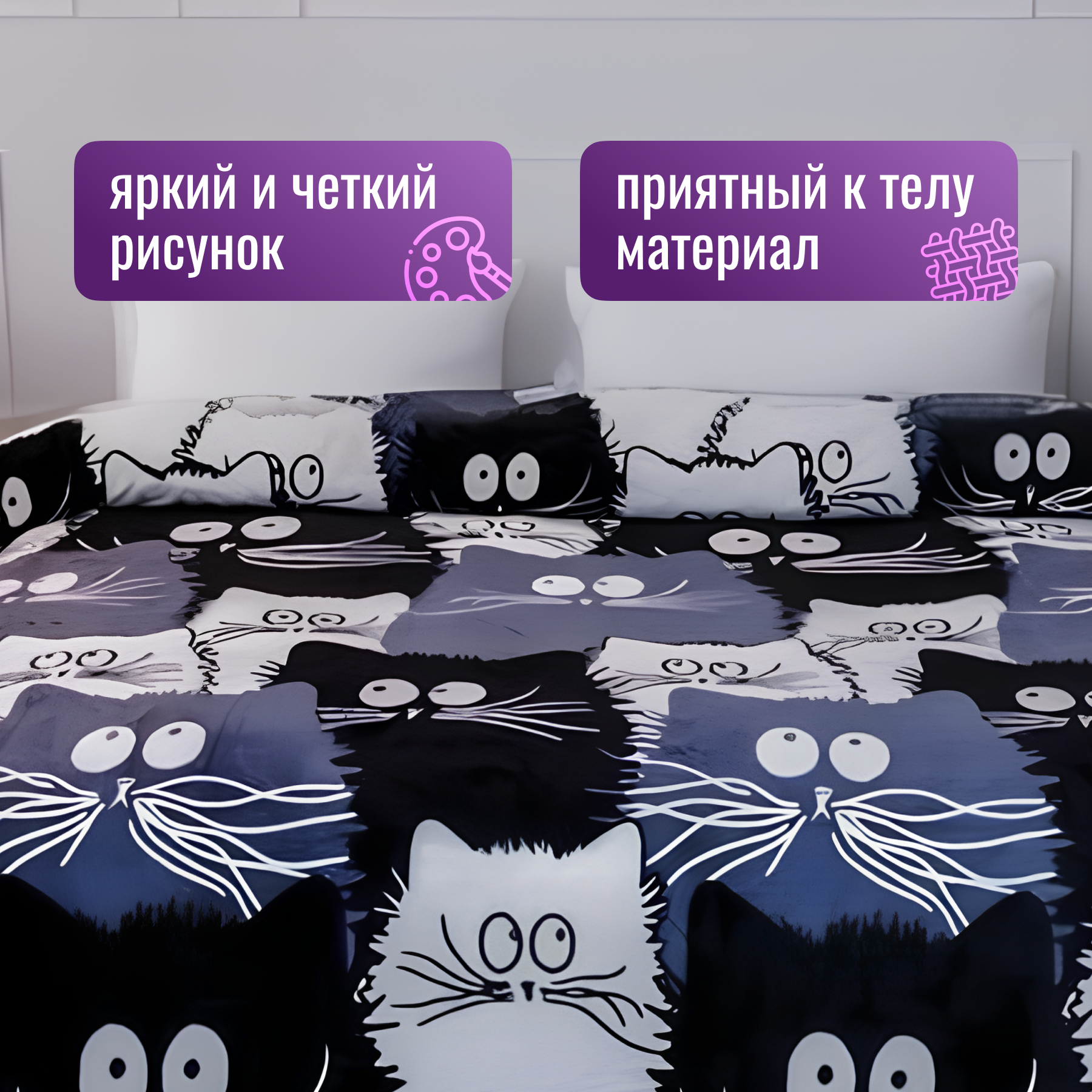 Покрывало на кровать 1 5 спальное 145х200 детское Juno Кавай коты котята kawaii