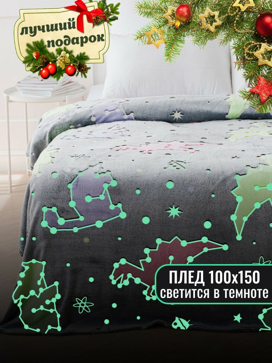 Плед 150х200 Павлина светящийся Звезды (светонакопитель), 1.5 спальный, полуторный, серый 1 083 ₽