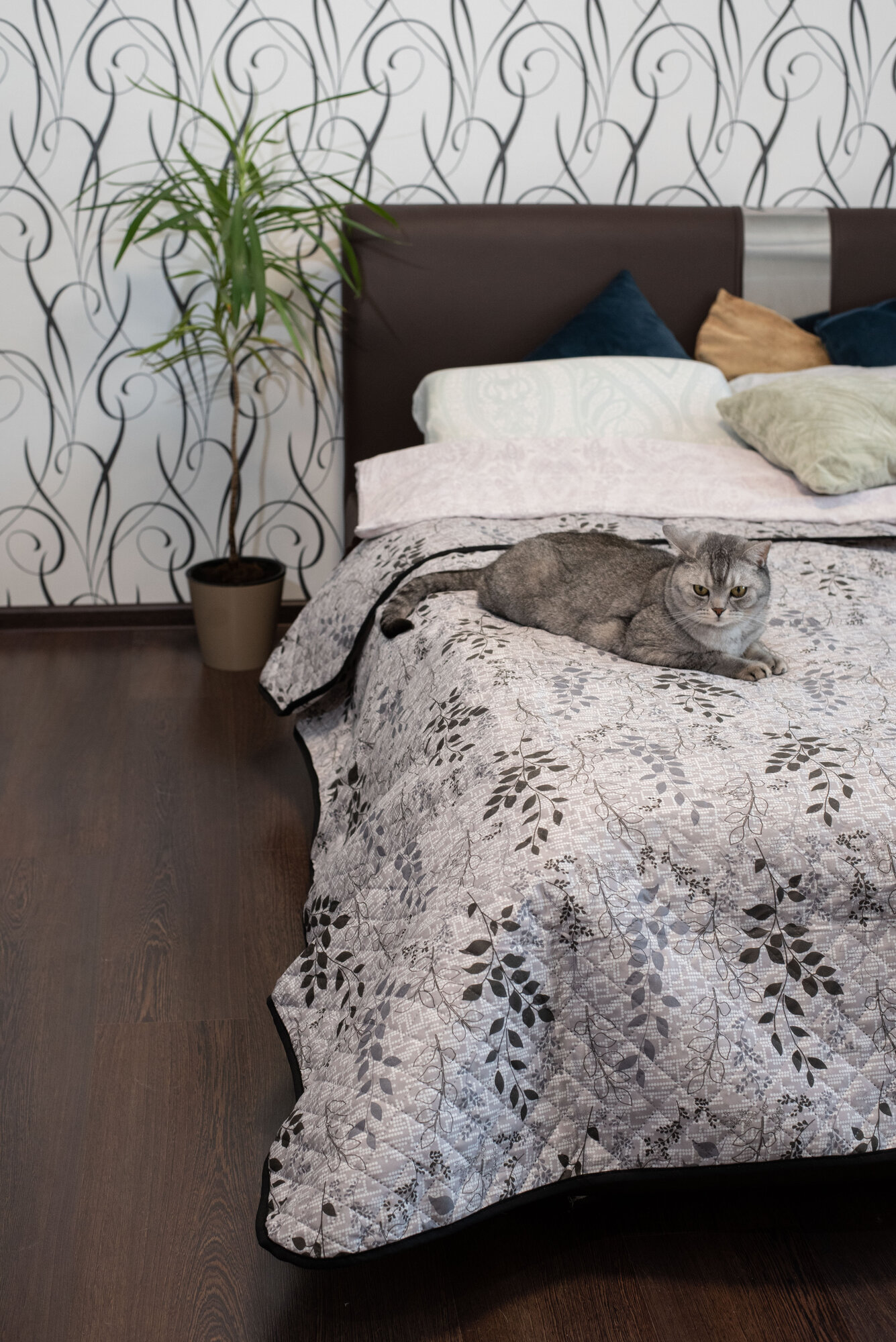 Покрывало на кровать 240х260 см с наволочками велюр MAXI ADRIA SMOKE