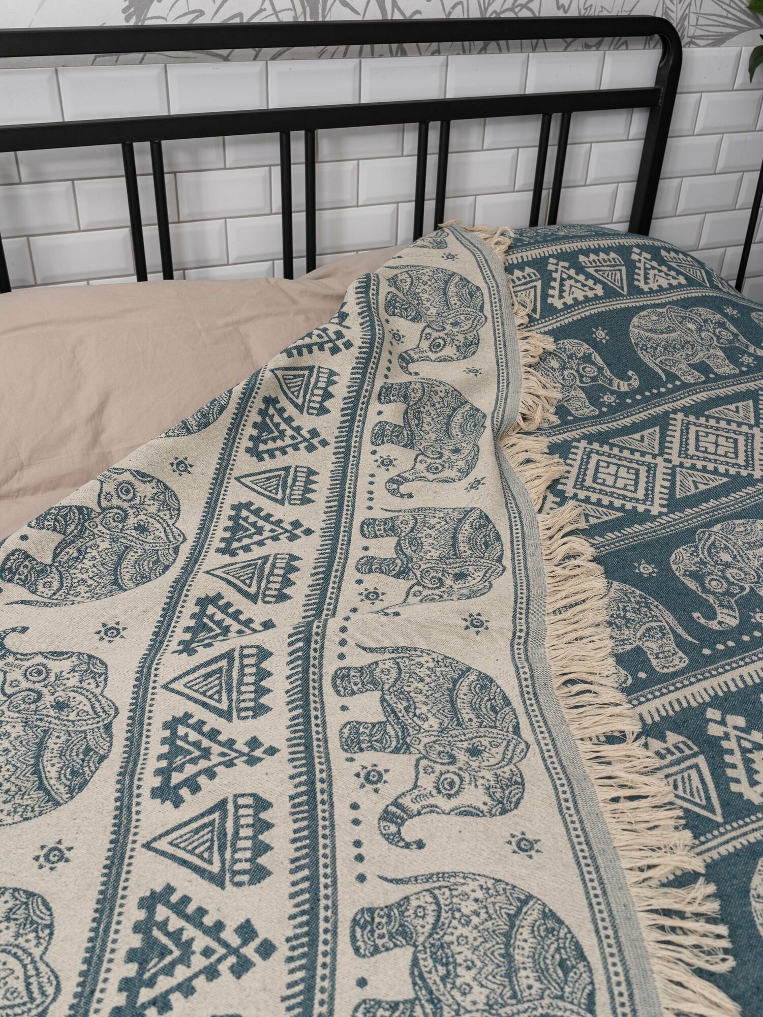 Плед-покрывало 220х240 см, Aura Home "Слоны", хлопок 100%, Турция, бирюзовый информация: