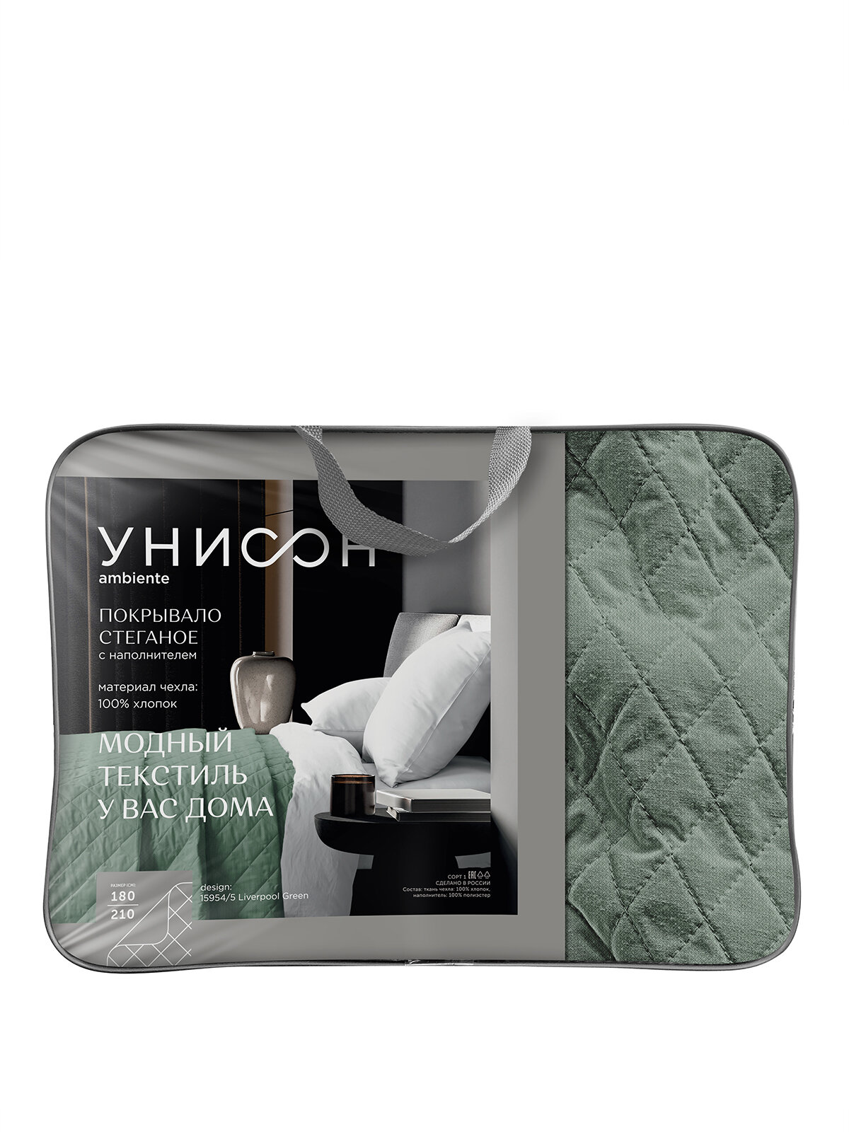 10 цен на Покрывало на кровать 210х220 "Унисон" Liverpool Green