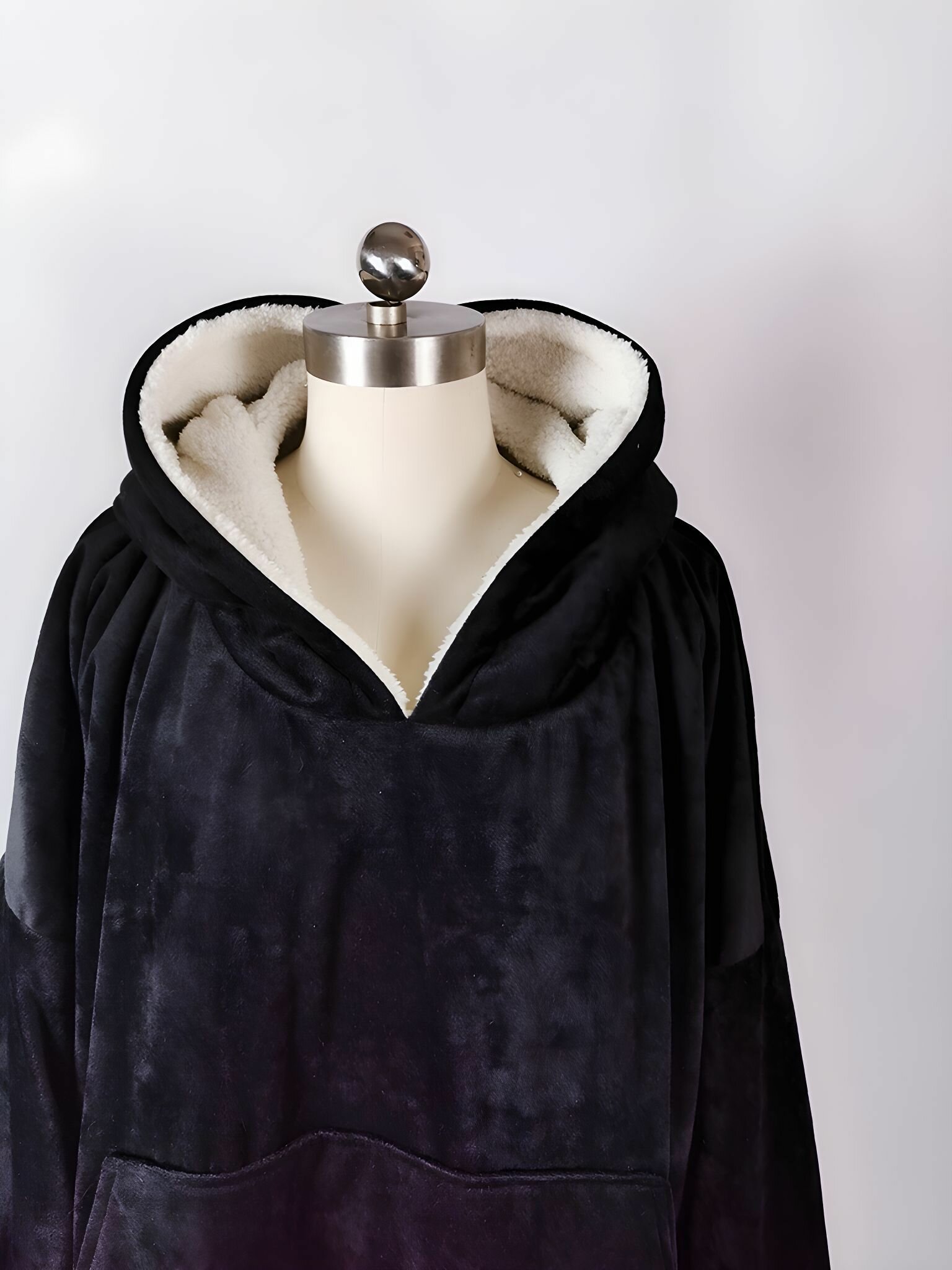 10 цен на Плед-толстовка Optmobilion черная/лонгслив для дома / плюшевая кофта / one size