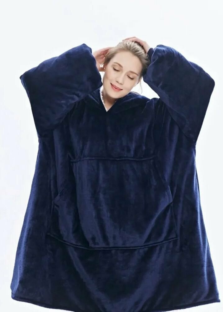 Отзывы на Плед-толстовка Optmobilion синяя /лонгслив для дома / плюшевая кофта / one size