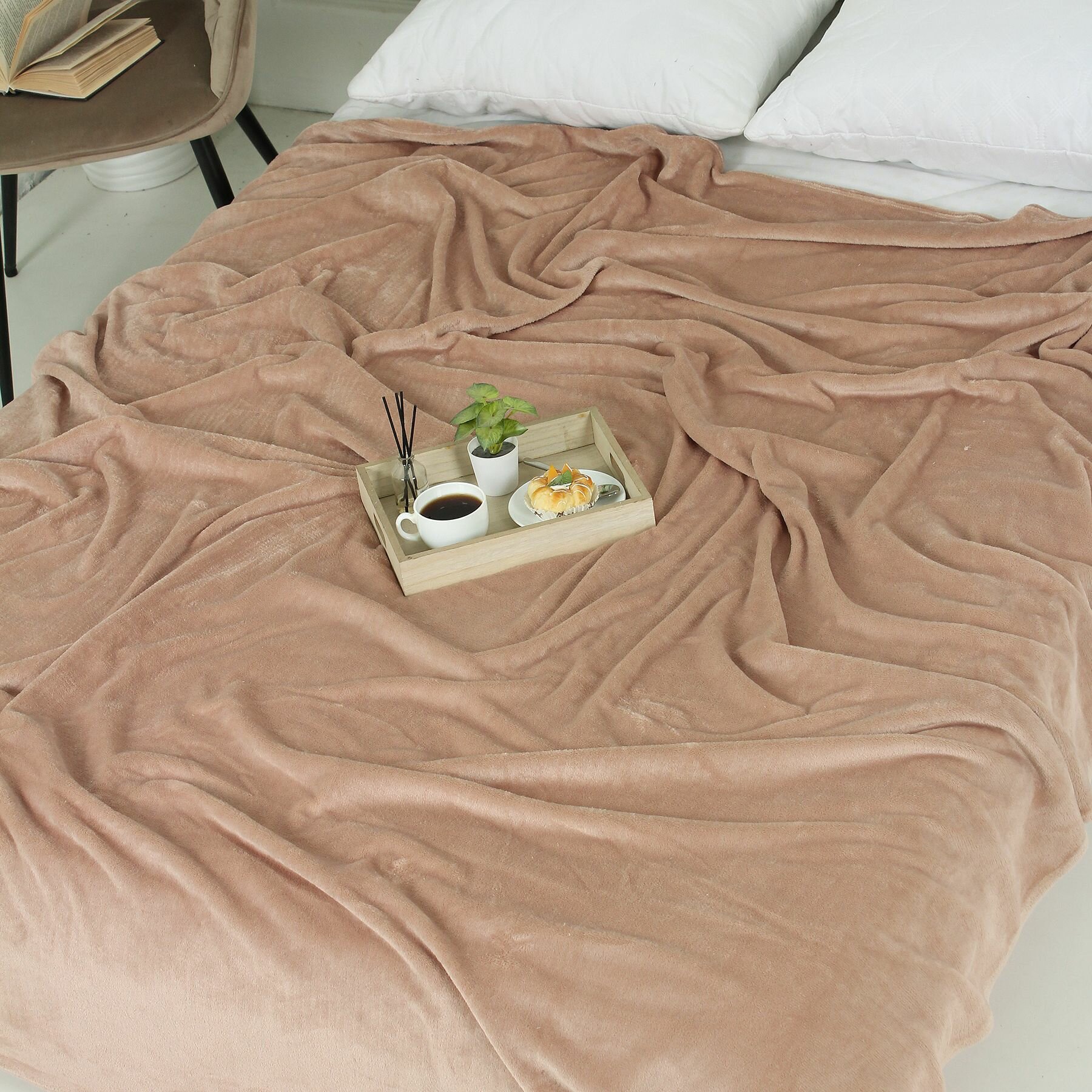 Плед 200х200 на диван однотонный бежевый информация: